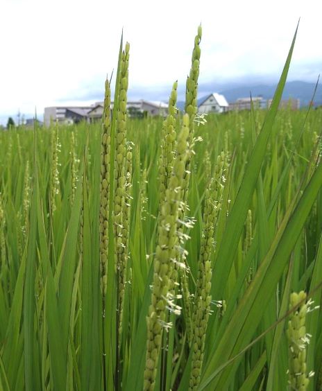 我家では早生品種の「古代米・朝紫」と「こがねもち」の花は咲き終えて、実が入り始めました。
