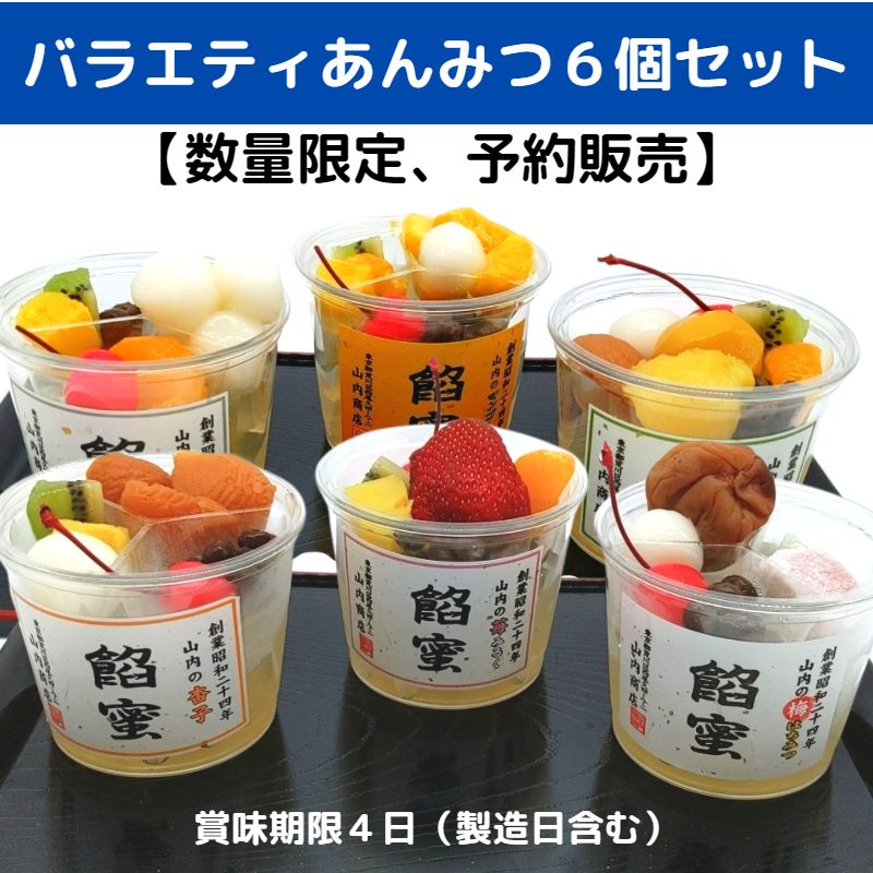 他店では見られない、バラエティに富んだ6個セット。実は、三代目店主があんこが苦手彡 あんこが苦手な方でも美味しく食べられるようにと、日夜研究を重ね、開発されたオリジナル蜜(笑)!!! あんこだけでも良し!蜜だけでも良し!両方トッピングしても良し!商品によっては、さらに練乳を加えて!楽しみながら、お召し上がりください。