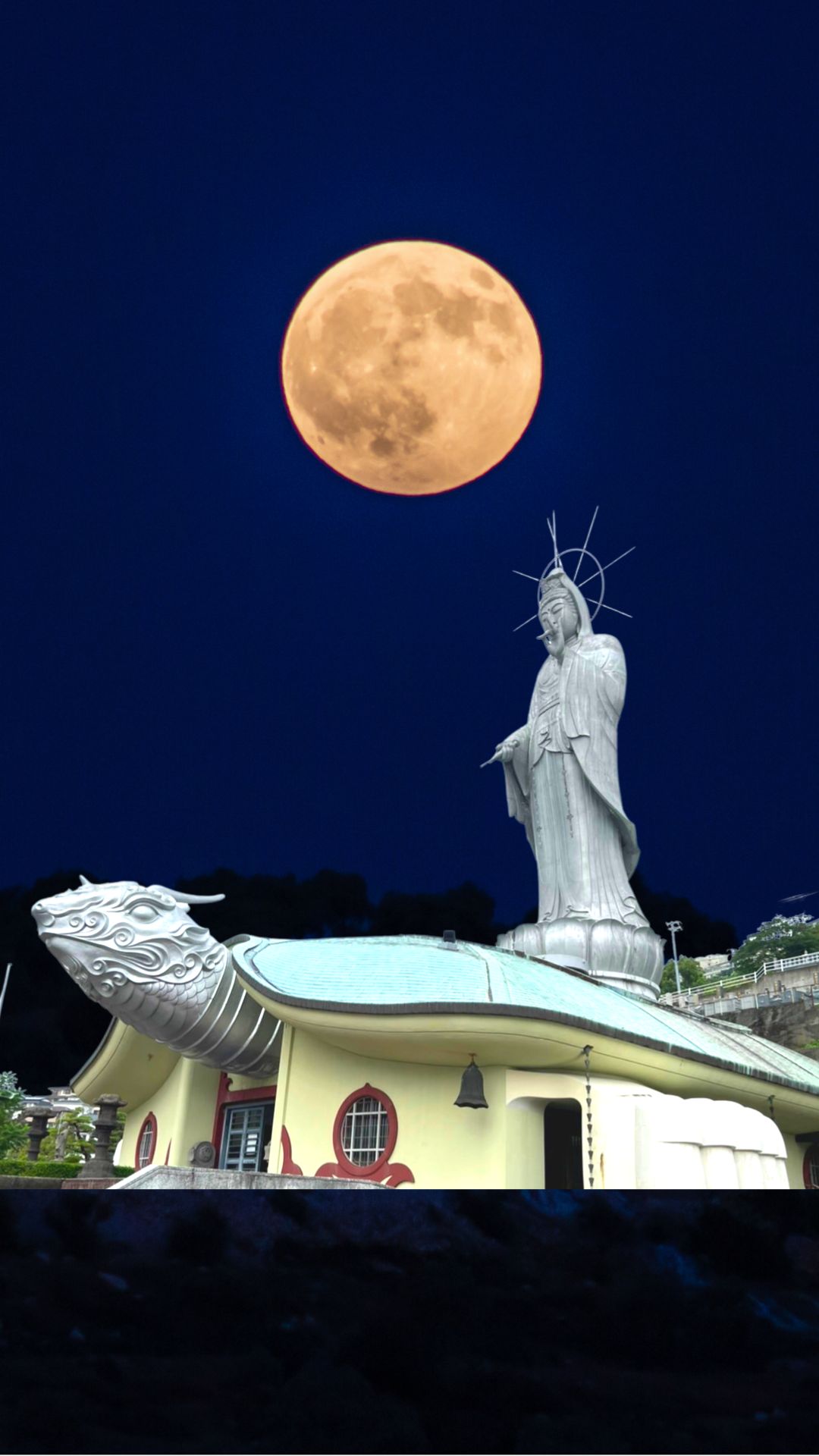 見ると亀の形をした建物の上に巨大な観音様が乗っているではありませんか!!