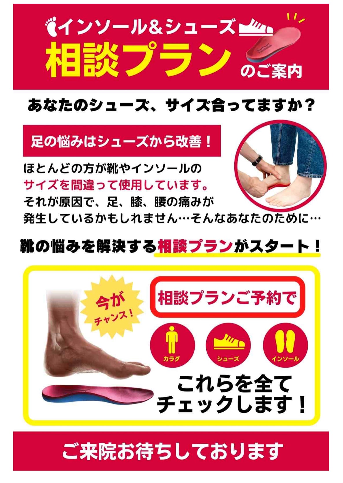 インソール 通常価格15000円(税抜)→12000円(税抜)でご提供いたします!