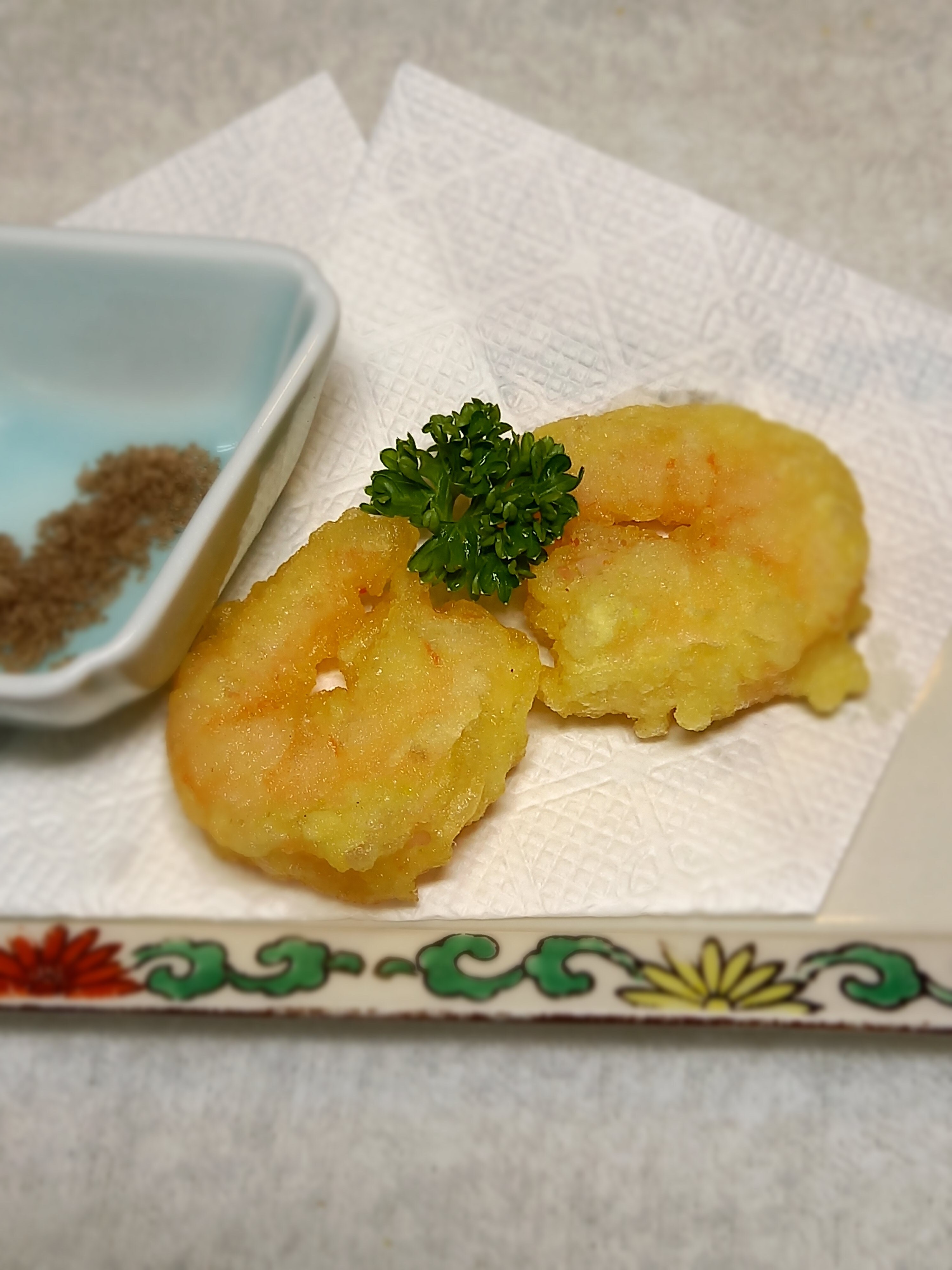 さて、今月はむきエビのミニ海鮮天ぷらを