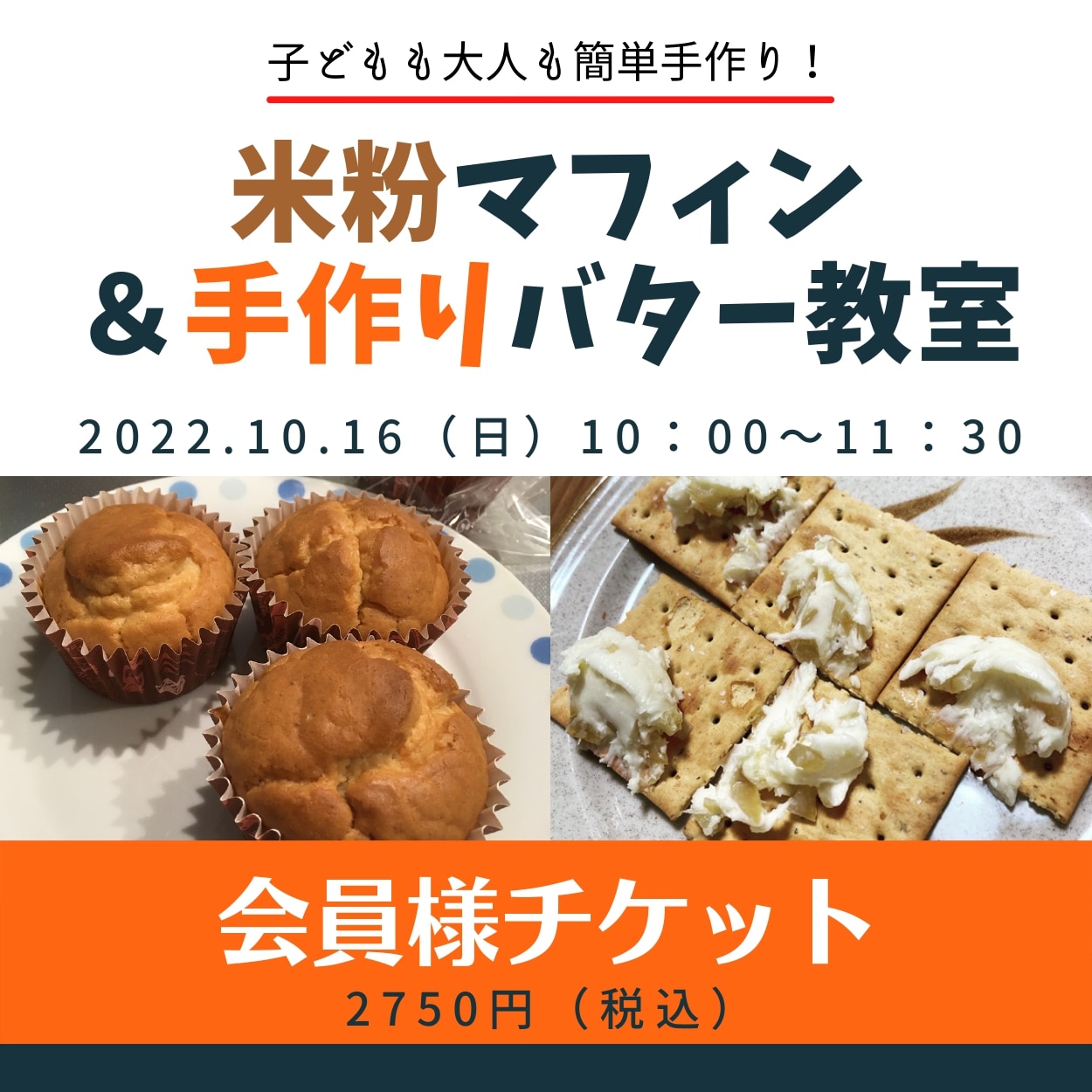 【メルマガ先行予約開始!】米粉マフィン&手作りバター料理教室/親子OK【アスラボsmile】