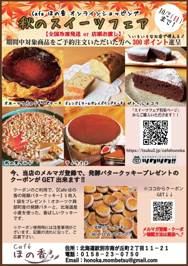 そして、わくわく市に合わせて【Café ほの香秋のスイーツフェア】を開催中です‼️