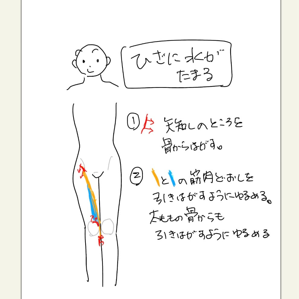 なので、この2つの筋膜を剥がすようにゆるめることで、膝の水は改善する】