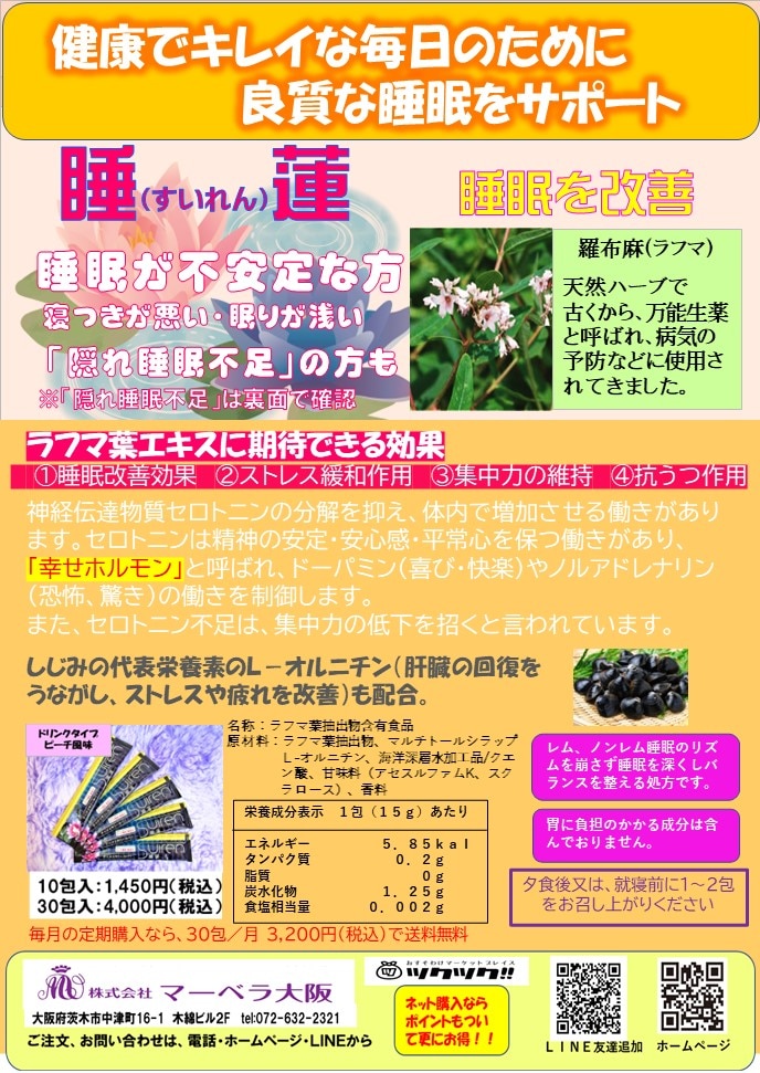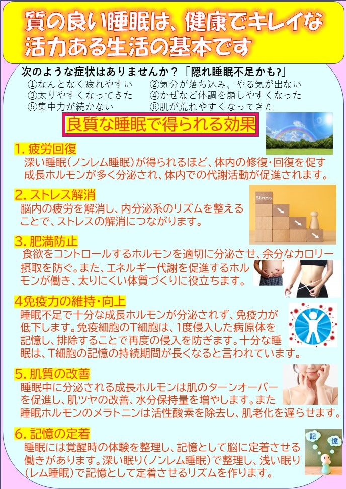・疲労回復 ・ストレス解消  ・肥満防止 ・免疫力の維持 ・肌質の改善 ・記憶の定着 をもたらします。