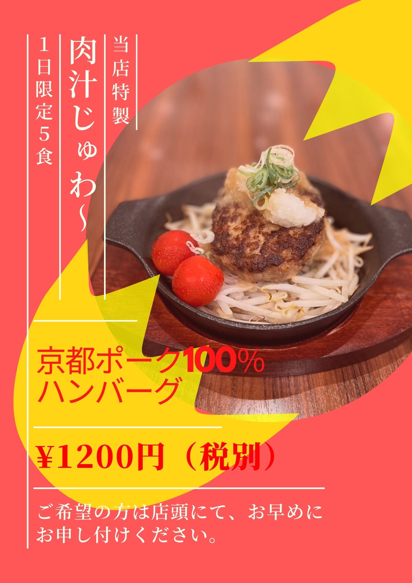 調理に時間がかかるので早めにご注文ください。