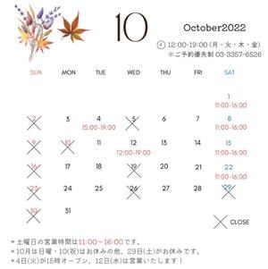 10月は少し不規則ですので、カレンダーでご確認くださいませ。