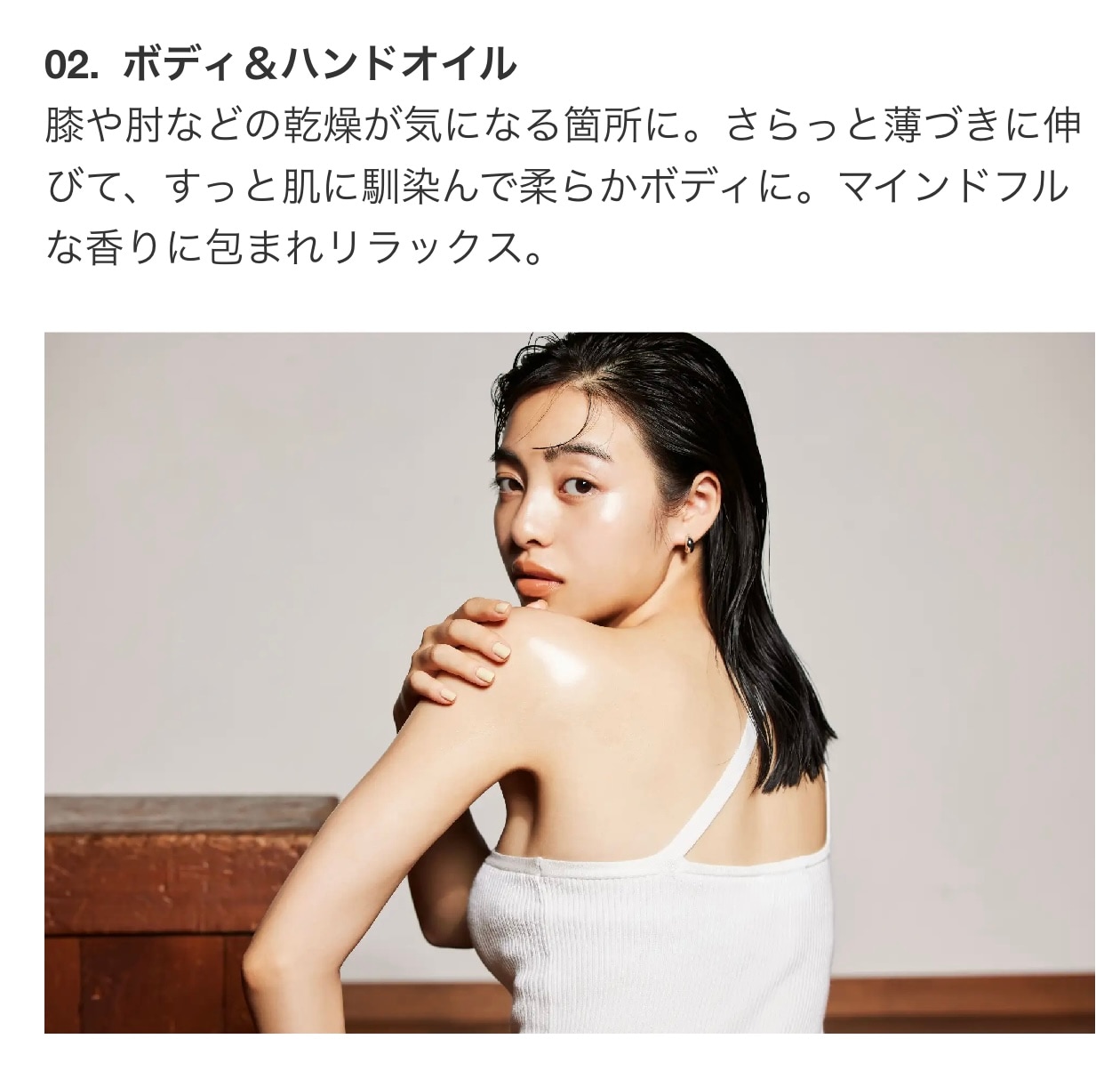 サラッとした使用感でベタつかない上品なOILとなってます。お出かけ中の付けたしも手に残るのが気にならずに使用できます。