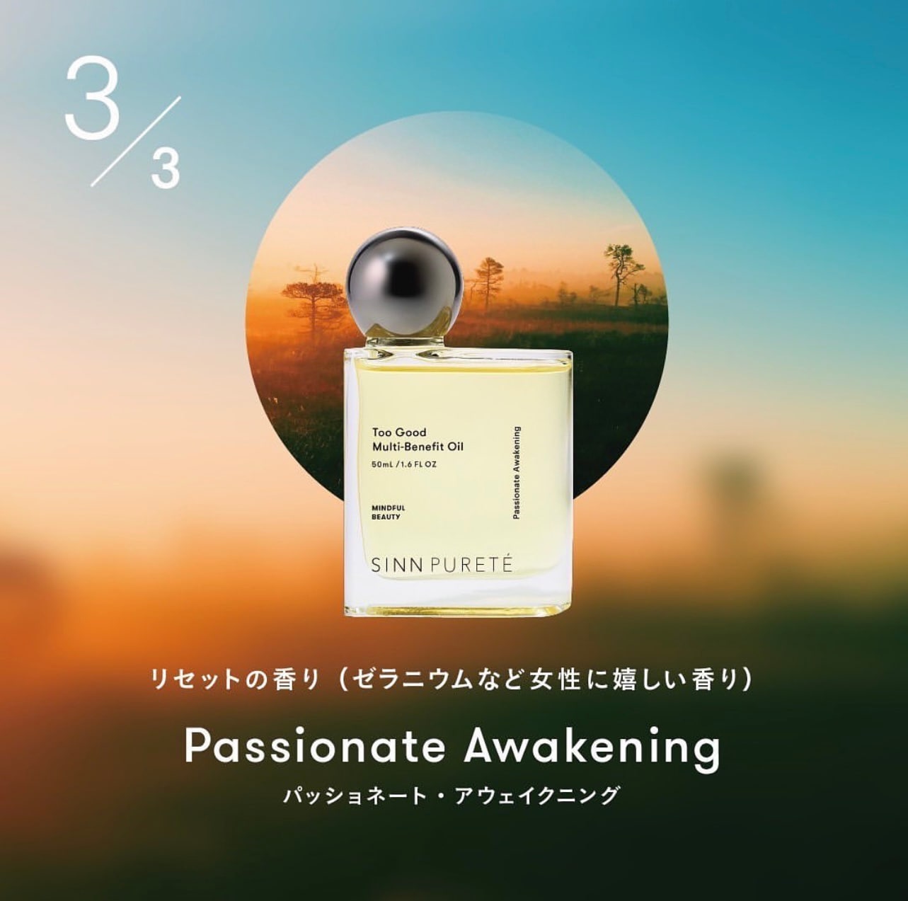 選べる3種類の香りで、それぞれが時間の経過とともに変化していくのも楽しめます。