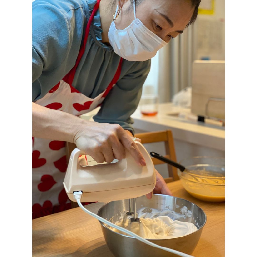 シフォンケーキは米粉で作るとダマになりにくいので、ふるう手間いらずだしとっても生地が扱いやすかったです。
