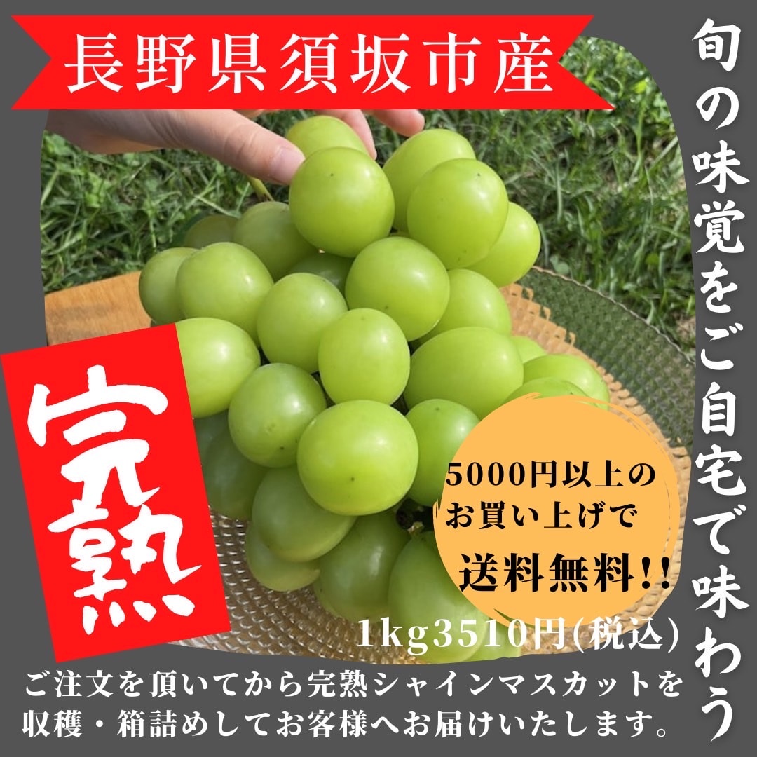 この秋、たくさんのお客様にご利用いただいた長野県の小林農園さんのシャインマスカットですが、収穫があと1週間ほどとリポートがありました。房の数はまだまだ充分にありますが、生き物であるシャインマスカットもぼちぼち次世代を残そうとする時期で、完熟を極めた粒が房から離れて地に辿り着こうとする時期です。