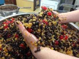 10月にオレンジピールを炊きそれをレーズンとブランデーで漬け込みました。