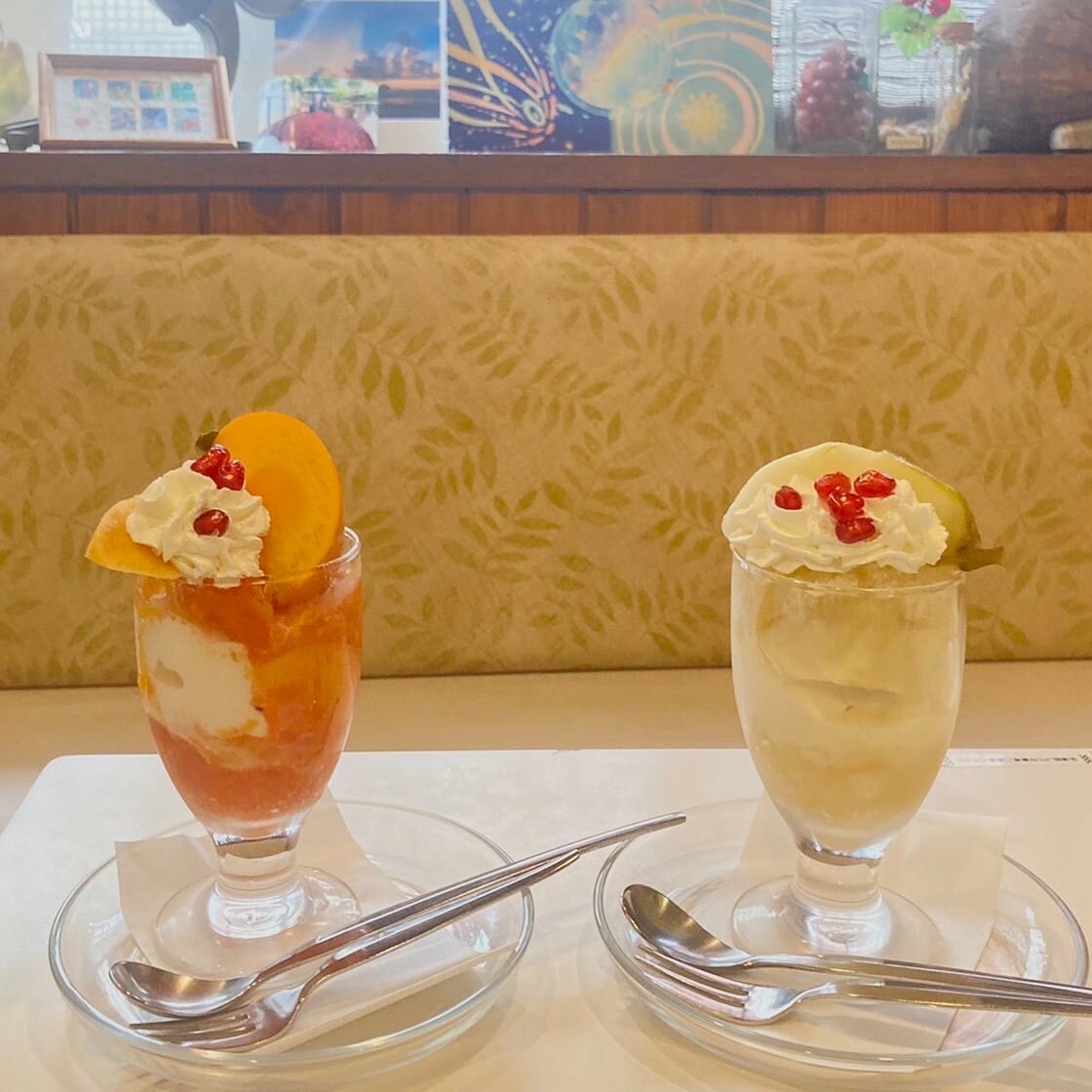 柿パフェは、トップに富有柿を飾り、シャーベットはおけさ柿でとろーり美味しいシャーベット!