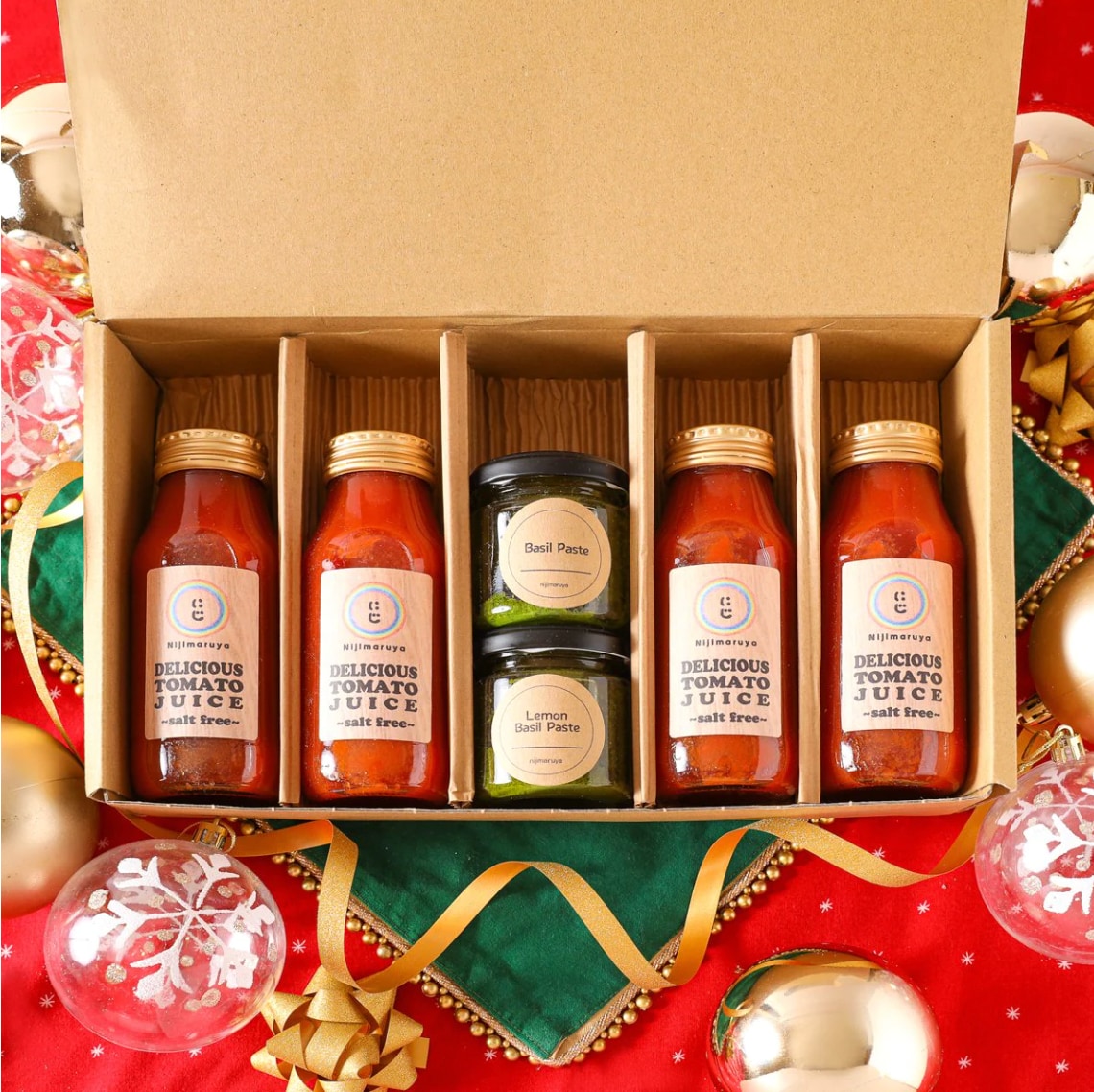 Lienfarmのスタッフのさっちゃんが無農薬で作ったとっても美味しいトマトジュースとバジルペーストのセットです。今まで飲んだ中で一番美味しいと思ったトマトジュース!