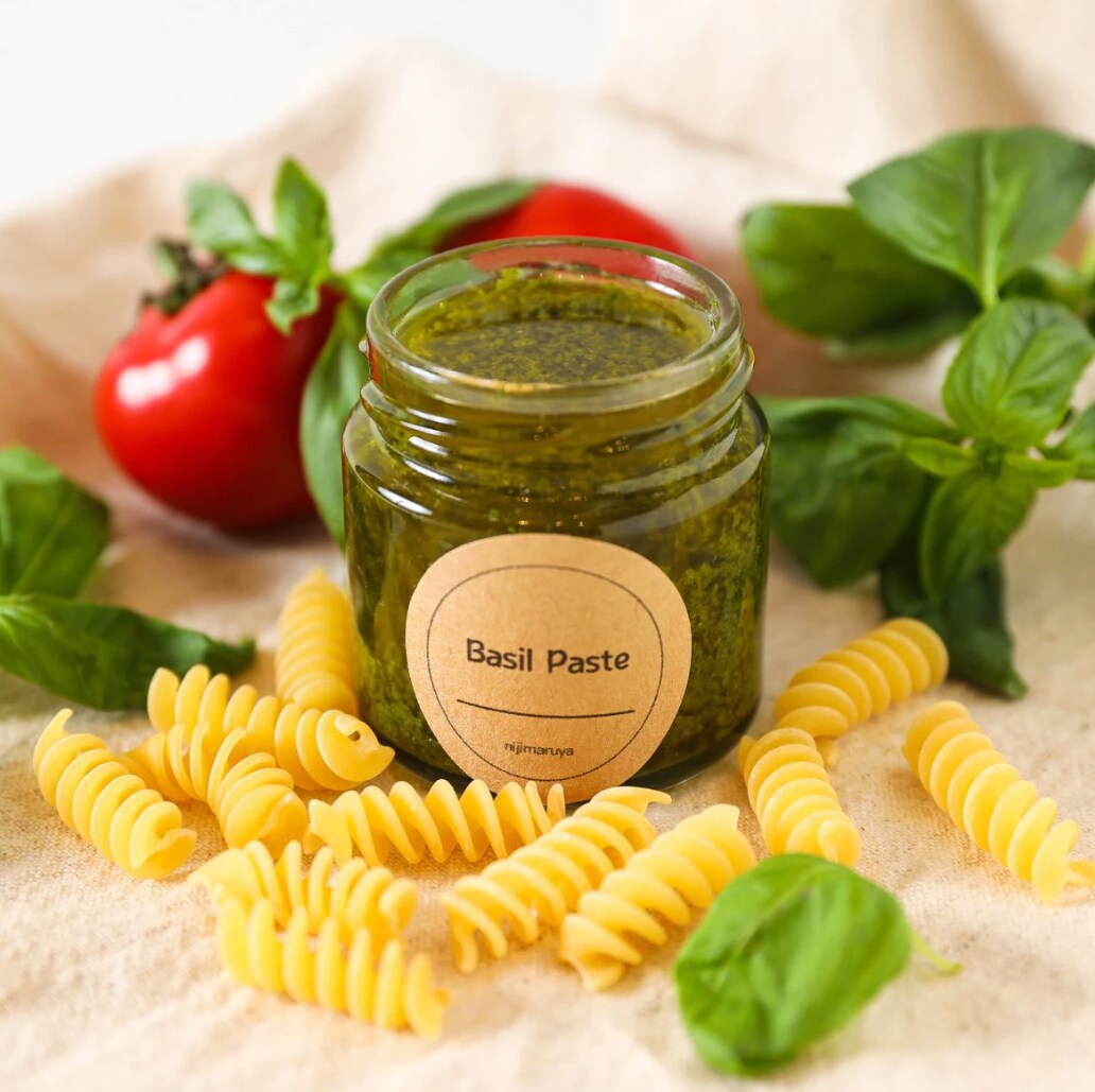 Lienfarmのスタッフのさっちゃんが無農薬で作ったとっても美味しいトマトジュースとバジルペーストのセットです。