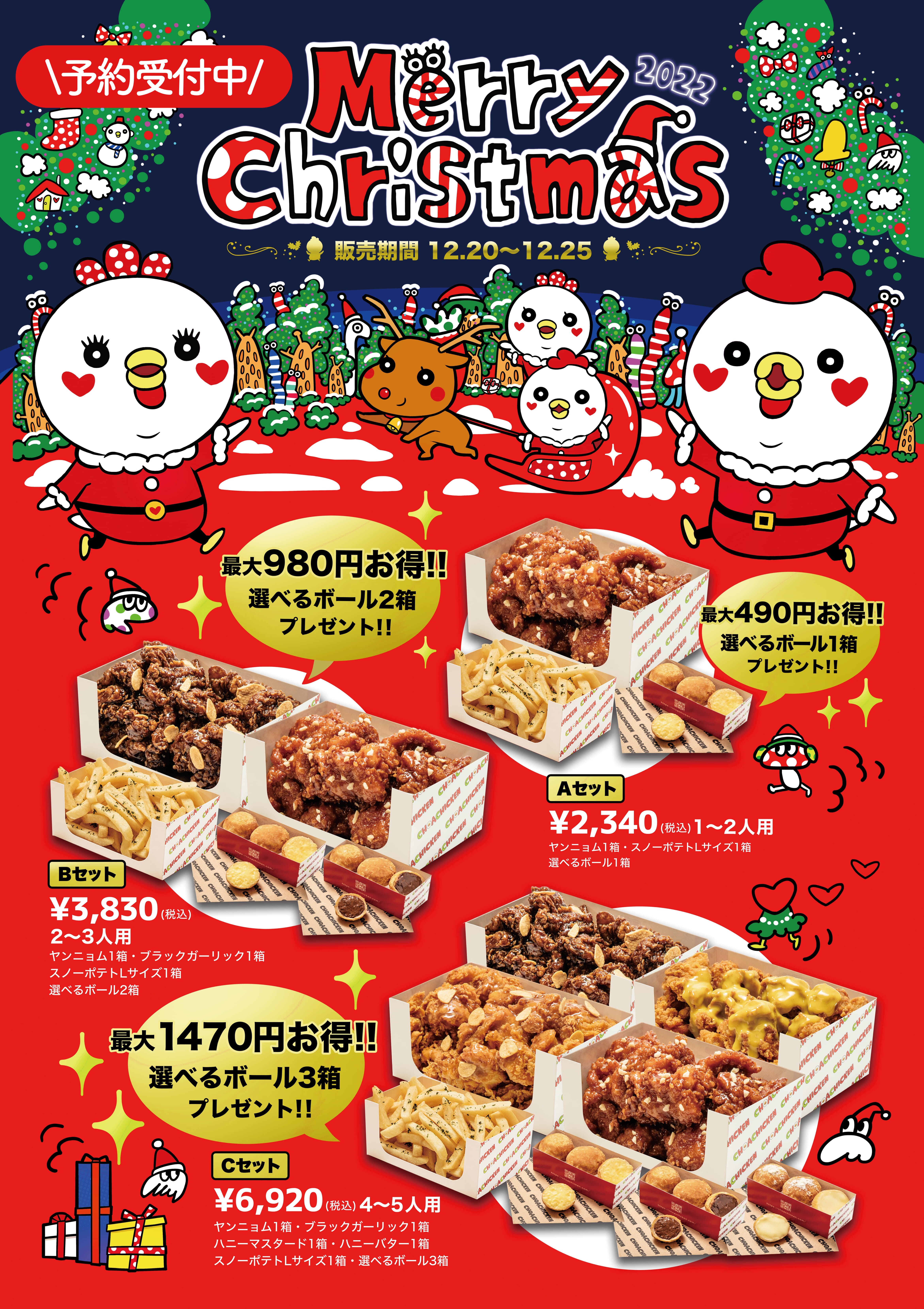 今年は12/20〜12/25の期間限定で、A.B.Cセットの、3つのパターンよりお選びいただけて、最大1470円もお得になります🤩