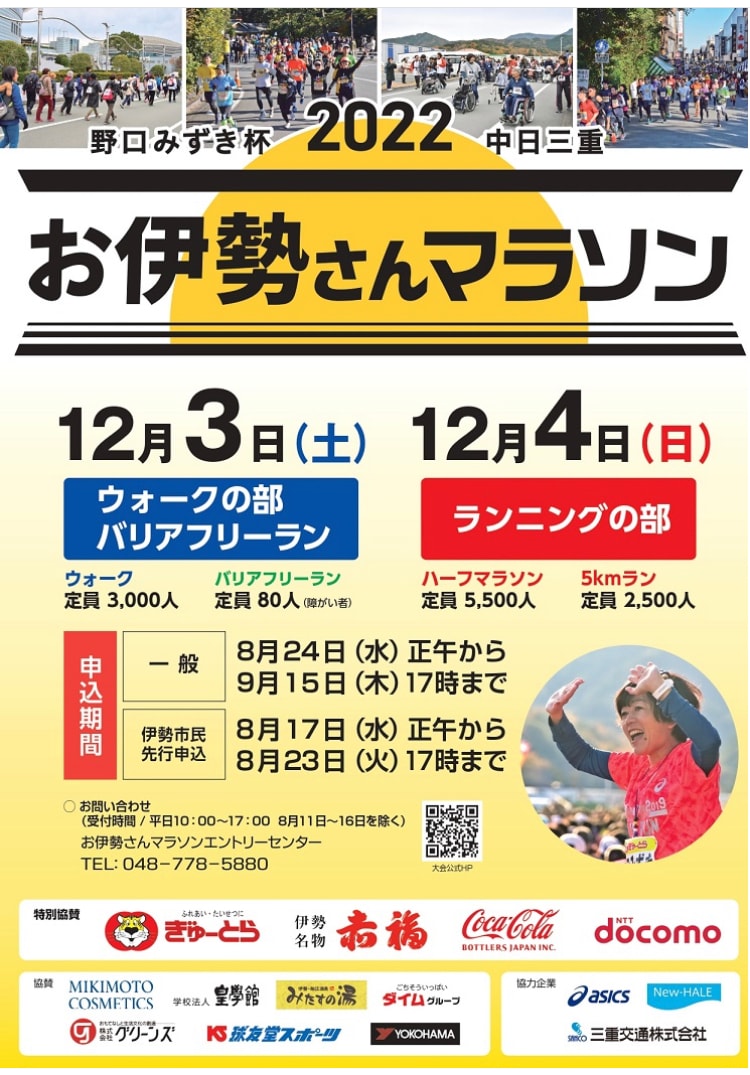 また、大会長はアテネオリンピック女子マラソン金メダリストで、伊勢市出身の野口みずきさんです!