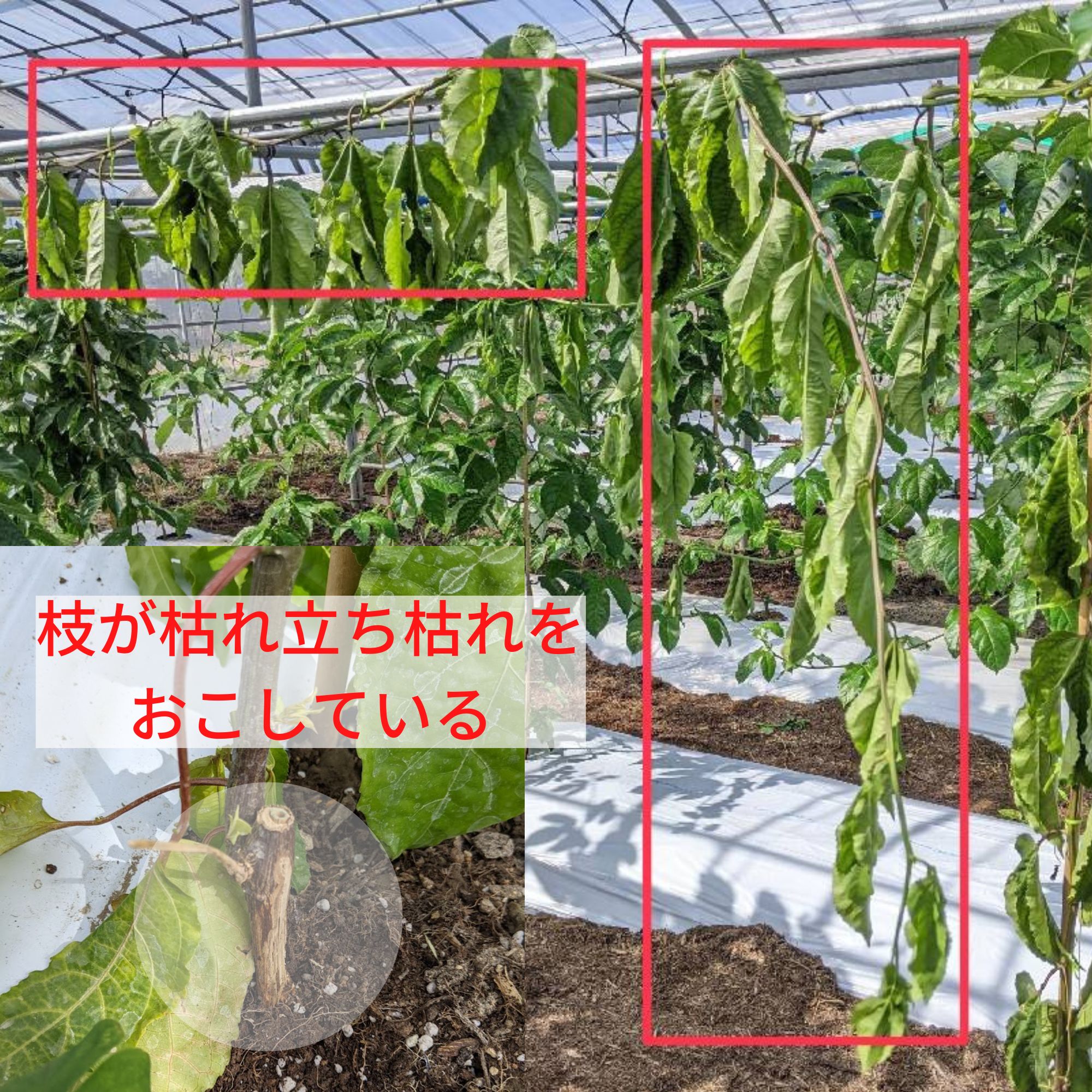 〇高温が続き全体的に花芽が枯れる→花が咲かないので実がつかない。