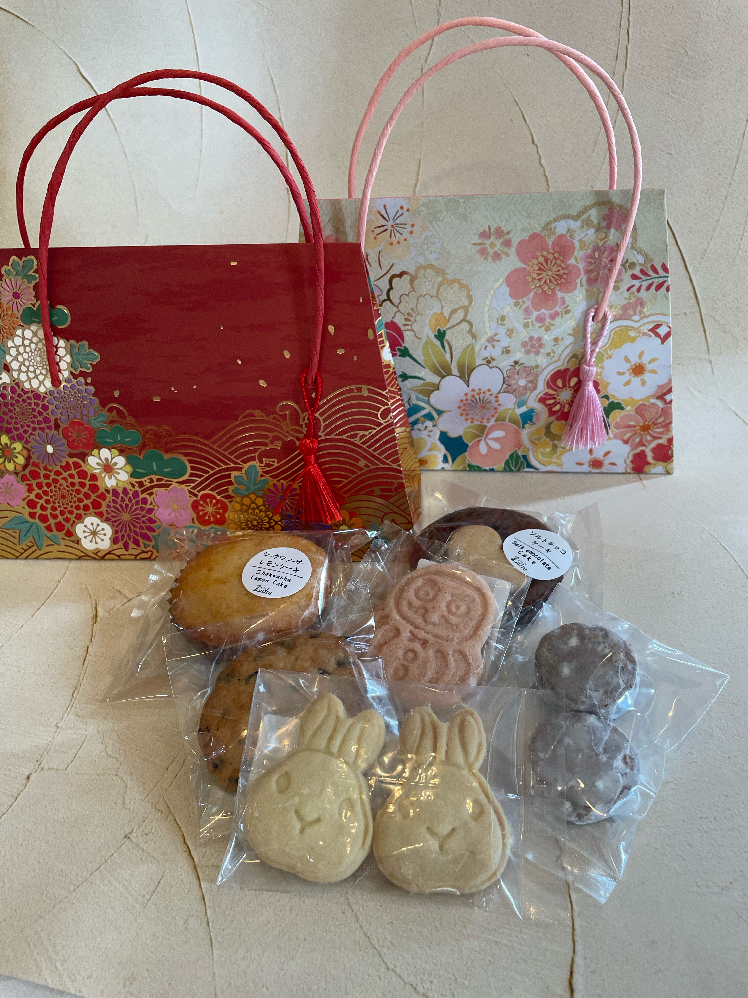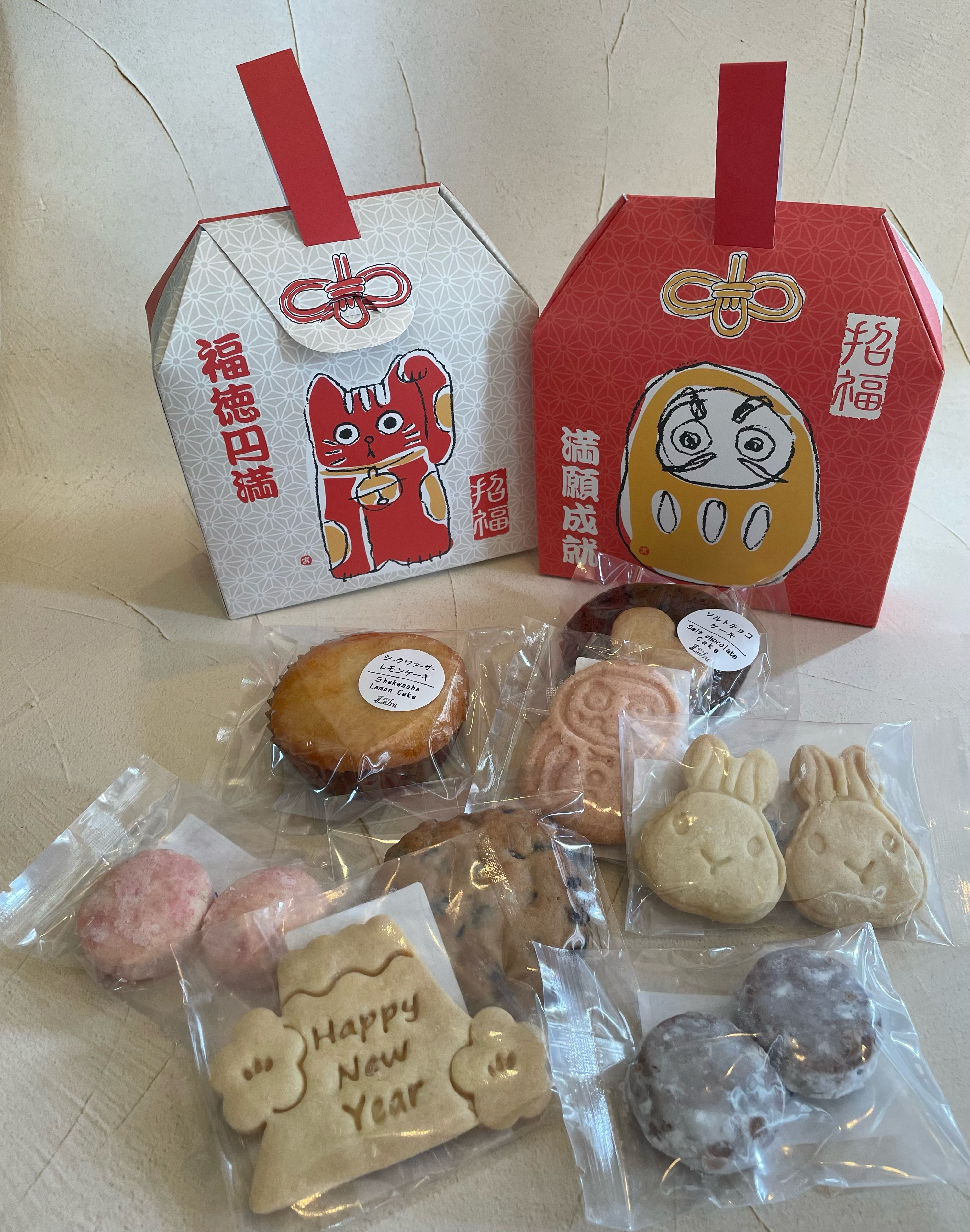 うさぎの形のクッキーや、縁起の良い富士山クッキー(Happy new yearの文字入り)