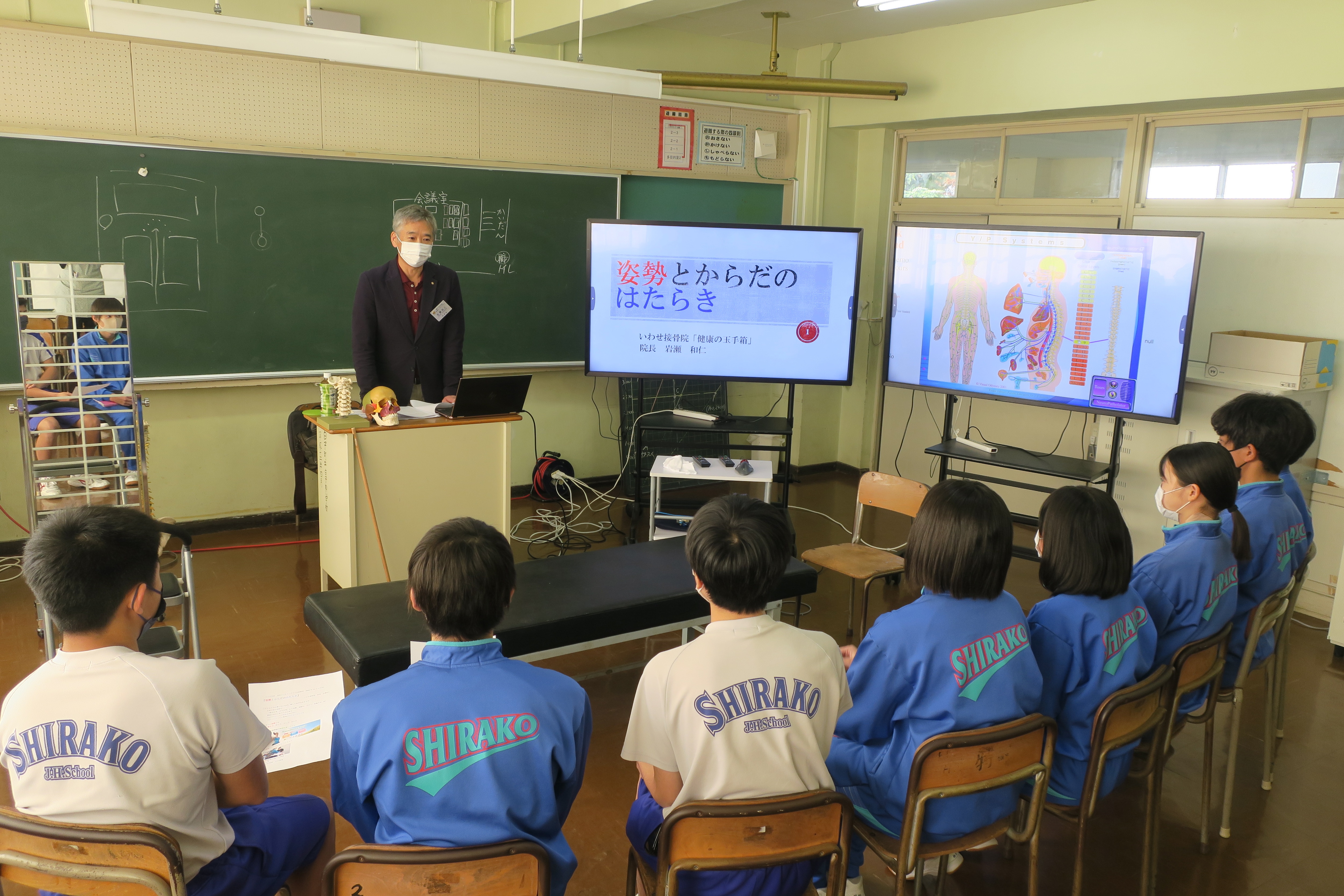 白子中学校にて、いわせ接骨院は「姿勢とからだのはたらき」の教室を担当しました。生徒さんたち、最後まで前のめりに参加してくれました。