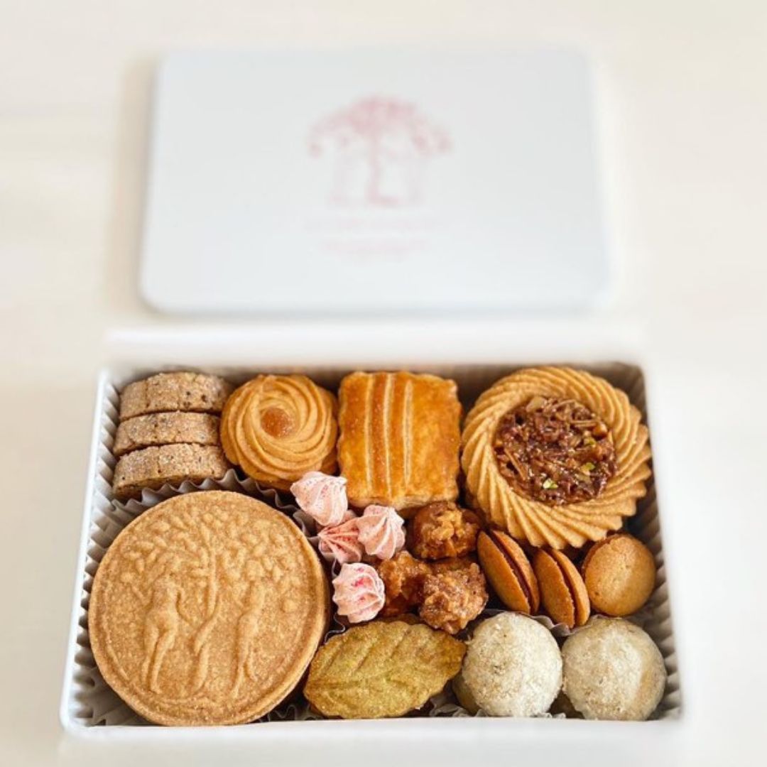 <UNE PETITE MAISONさん~渋皮栗とピスタチオのマーブルケイクと、 ホリデーシーズン限定の新しいクッキー缶に 10種類の小さな焼き菓子を詰め合わせ~>