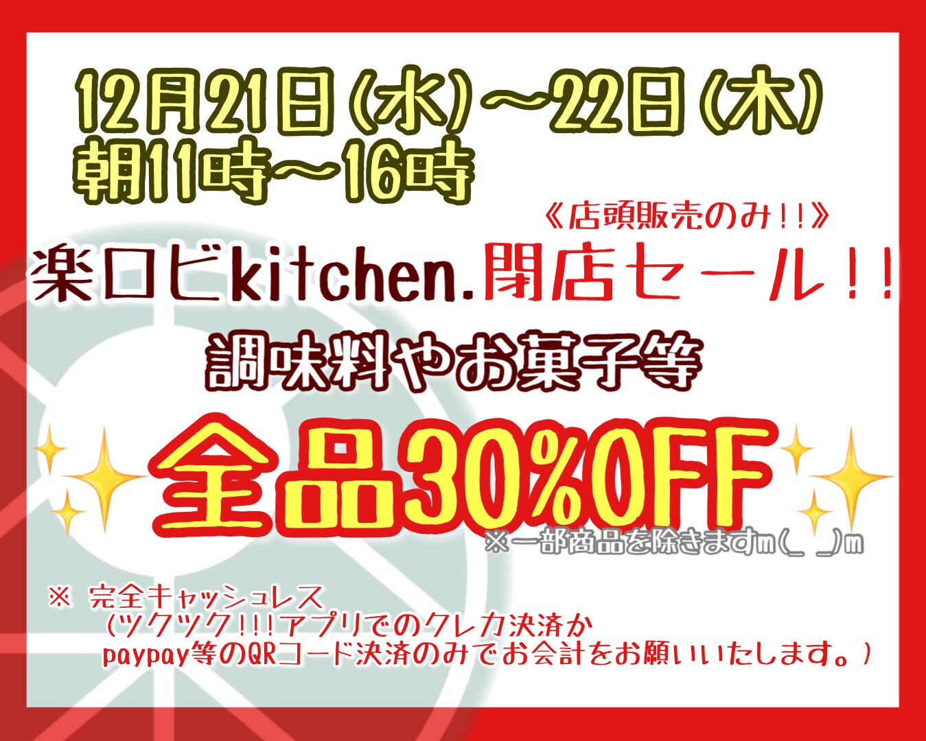 楽ロビ全品30%OFF閉店セール【12月21〜22日11〜16時】@楽ロビkitchen.