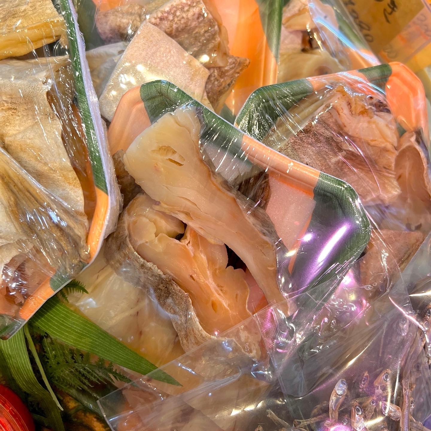 大好評により追加(15食の)おせち、焼き鯛(にらみ鯛)、お造り盛り合わせ、お鍋セット、トロ鯖棒寿司などの