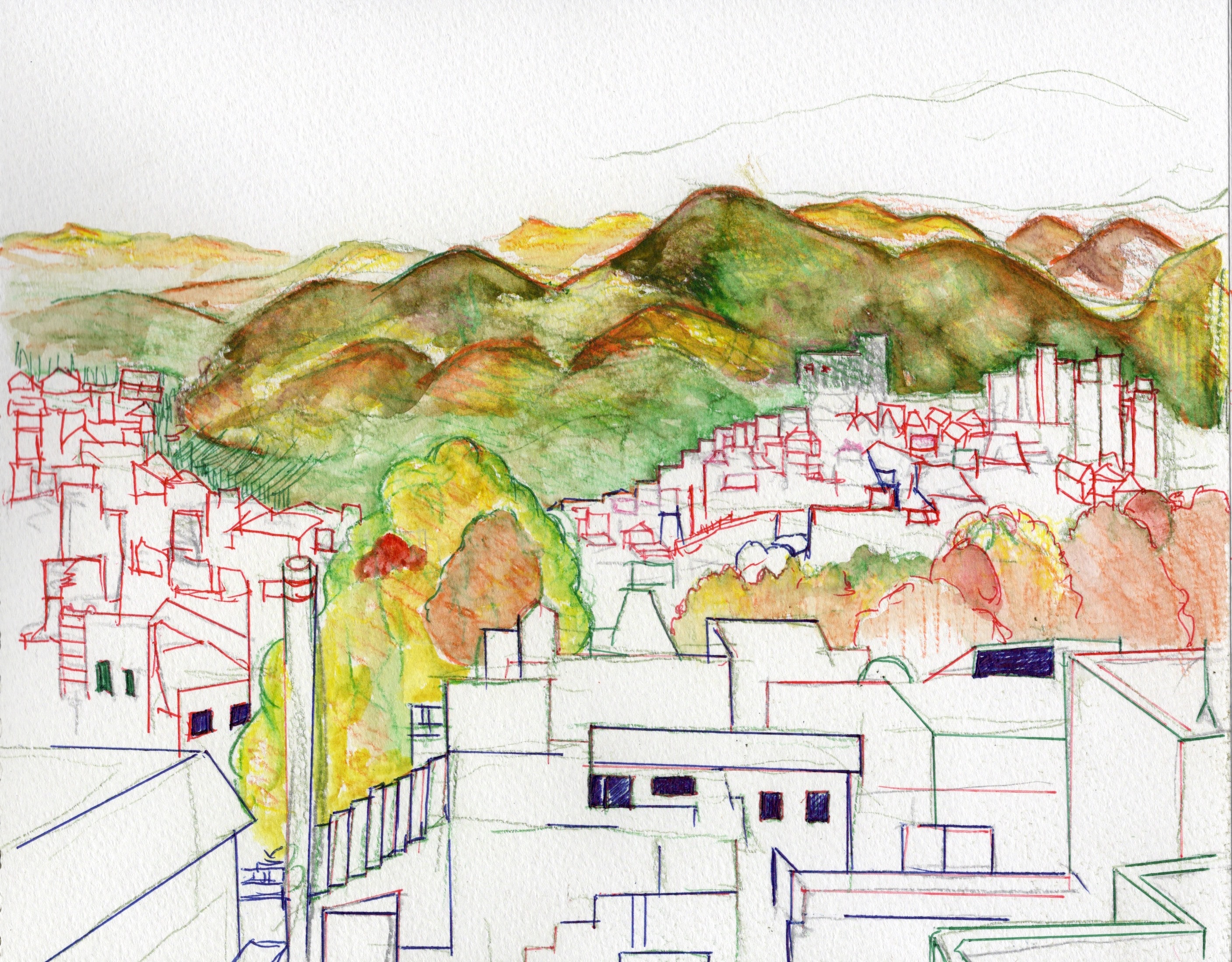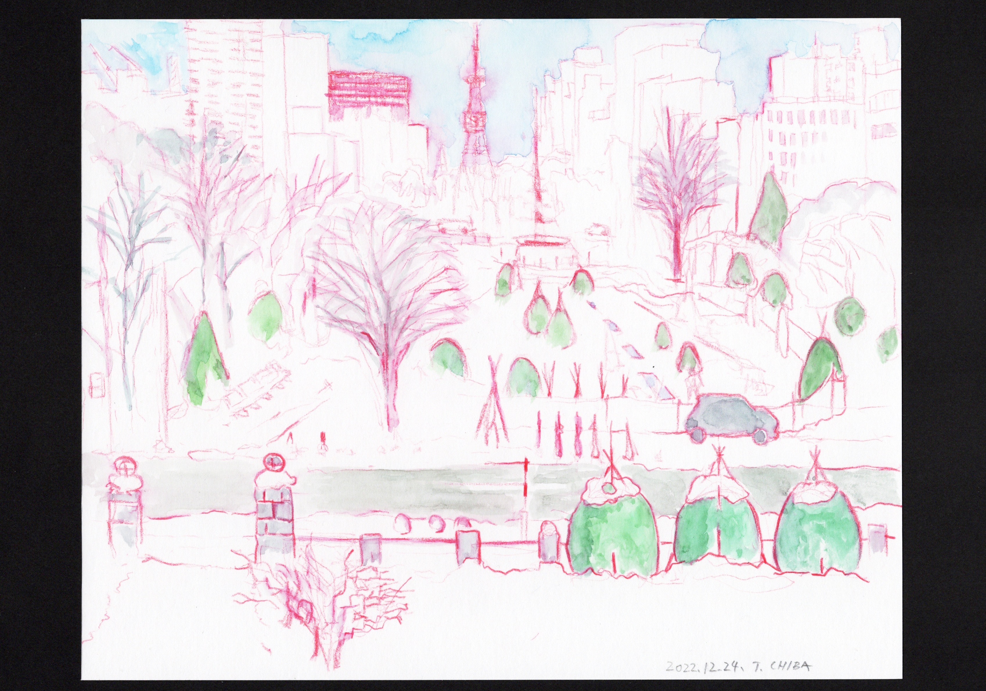 そんなわけで、今日のギャラリーの窓から見た景色の絵が今日完成したので、明日↓を展示してしまおうと思います。何か今日できた作品がもう明日には展示できるということがすごく幸せだとおもえる。