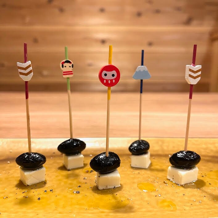 【 黒煮豆のピンチョス 】