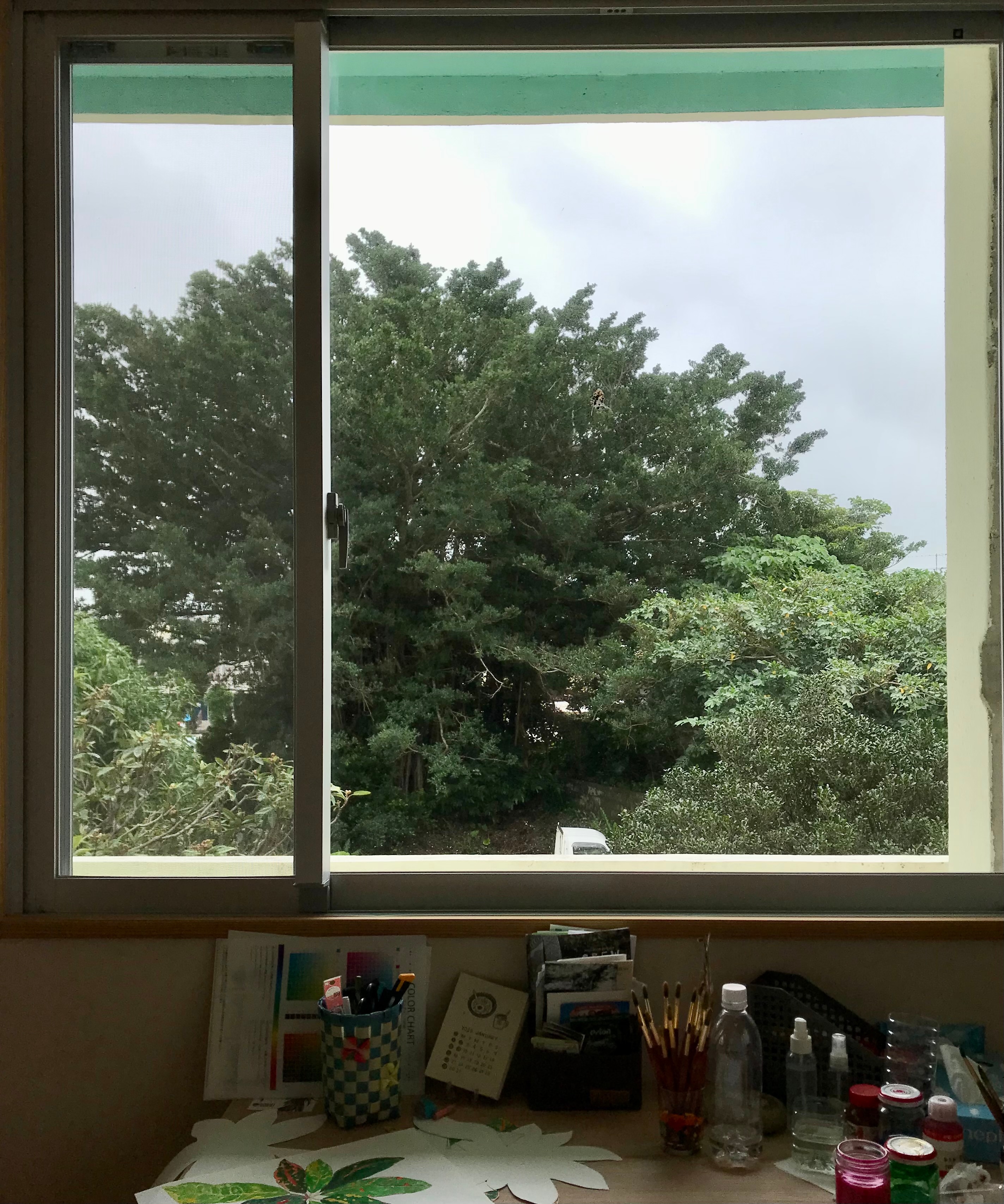アトリエから見えるガジュマルが見守ってくれる中