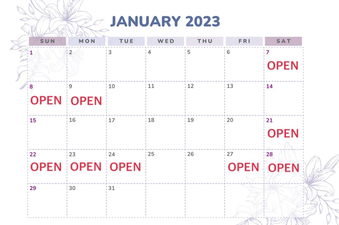 今月の営業日は画像の通り