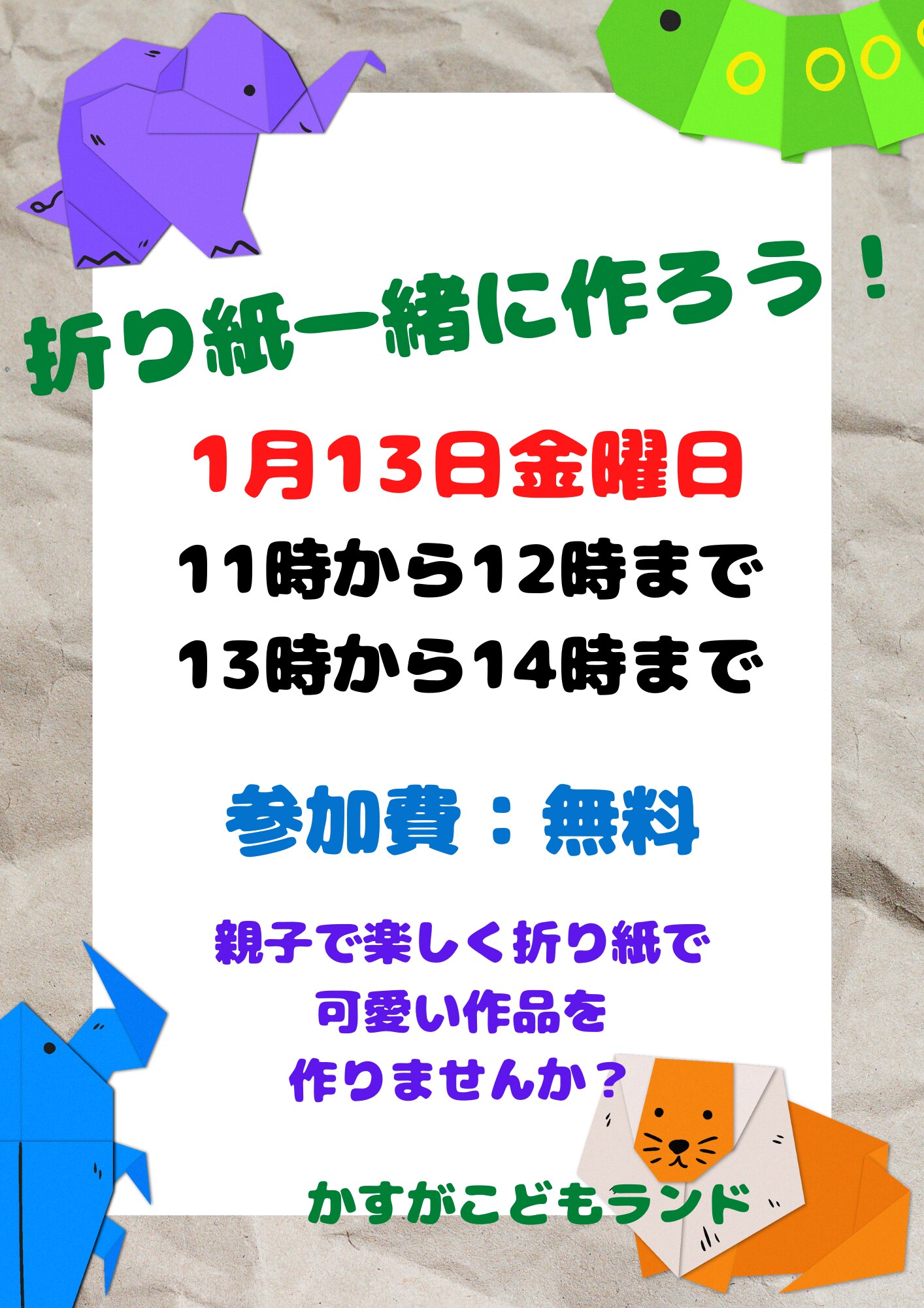 折り紙一緒に作ろう!イベントのお知らせ😄かすがこどもランド