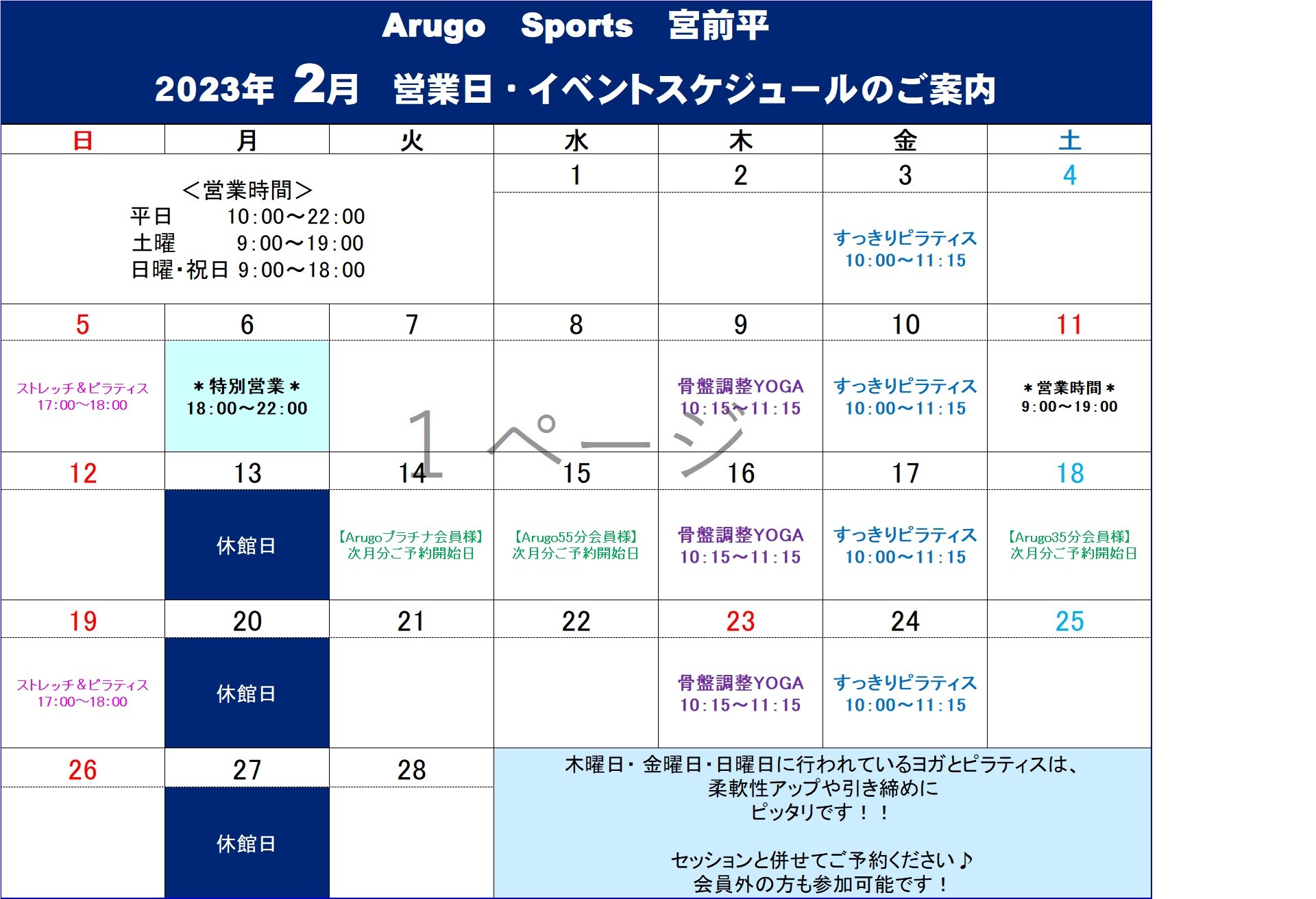 2023年2月の営業スケジュール・イベントのお知らせをいたします。