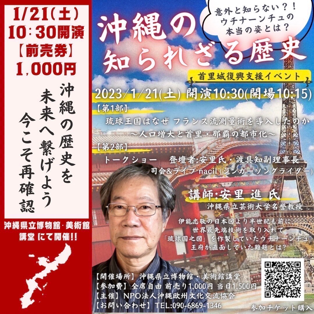 【2023/01/21(土)10:30】首里城復興支援文化講演会 【前売り券】NPO法人沖縄欧州文化交流協会主催