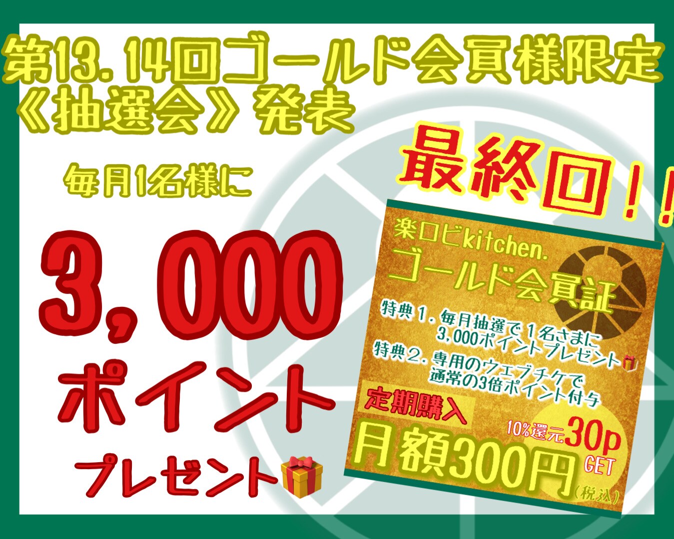 当選者にはLacoo kitchen...(旧楽ロビ)から《ショップからのポイントプレゼント》として【3000ポイント】付与させて頂いております♪♪