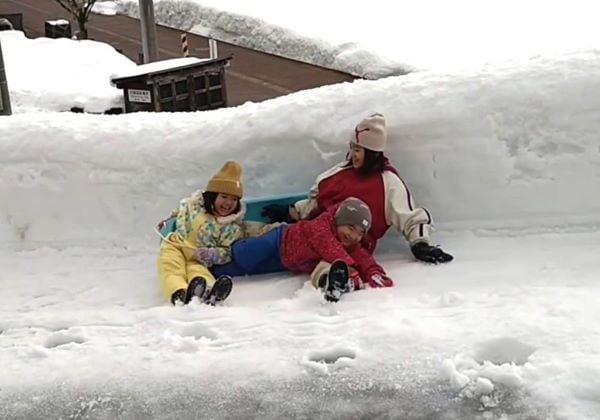 そんな雪国でも、孫達は汗をかきながらソリ遊びを楽しんでいます。