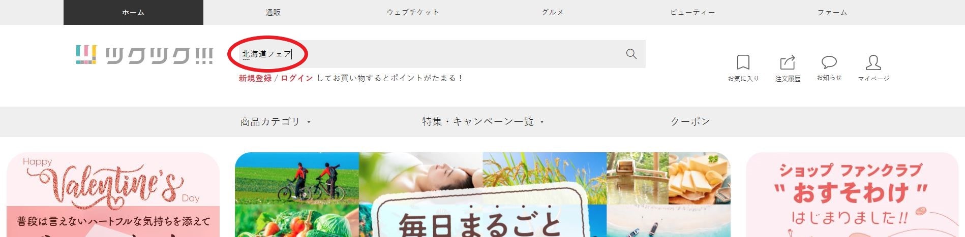 まずは、こちら↓からツクツク!!!ホームを開き、「北海道フェア」で検索!