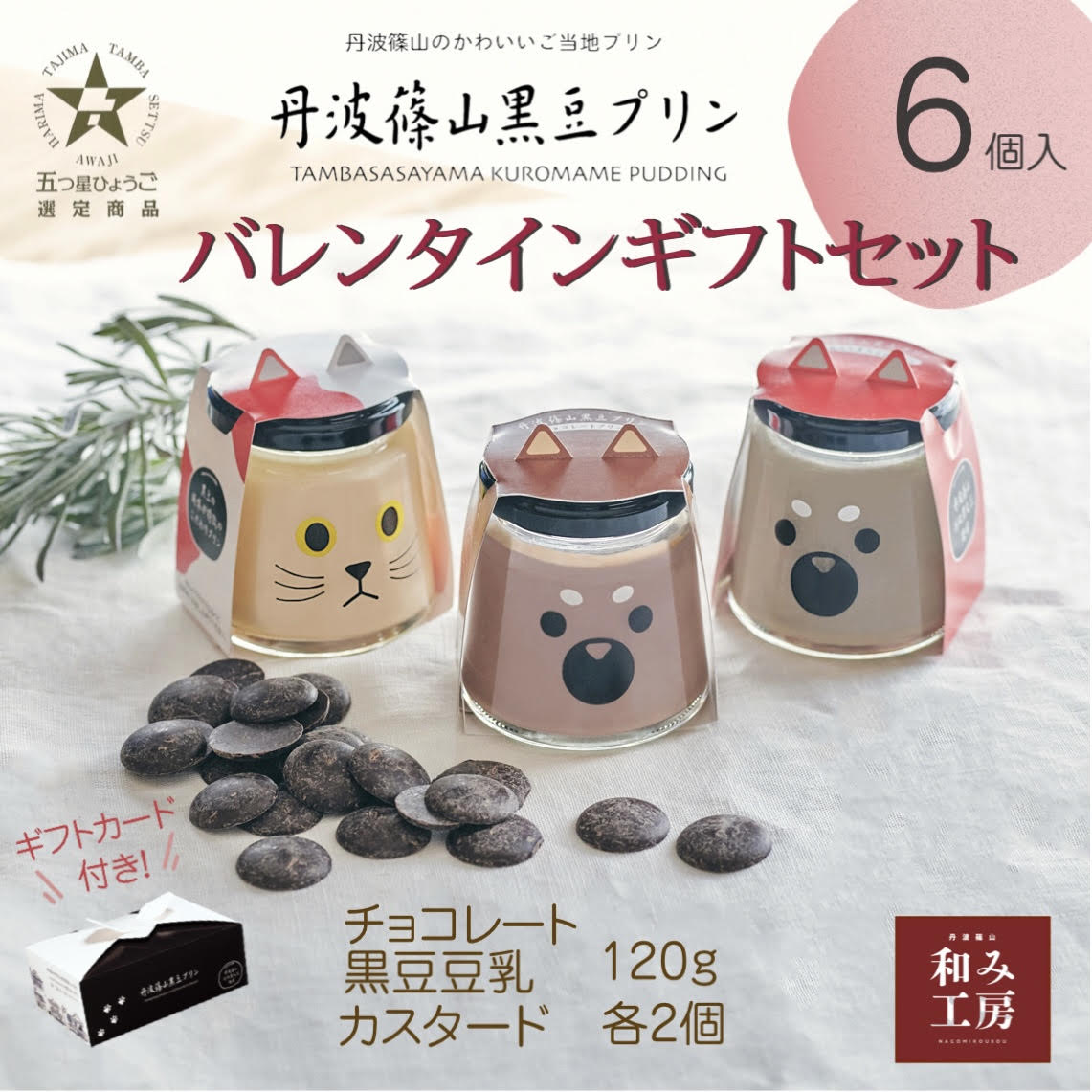 バレンタインギフトセットは、「チョコちゃん」黒豆豆乳の「クロちゃん」カスタードの「マメちゃん」が各2個ずつ入った6個セットをご用意しました。