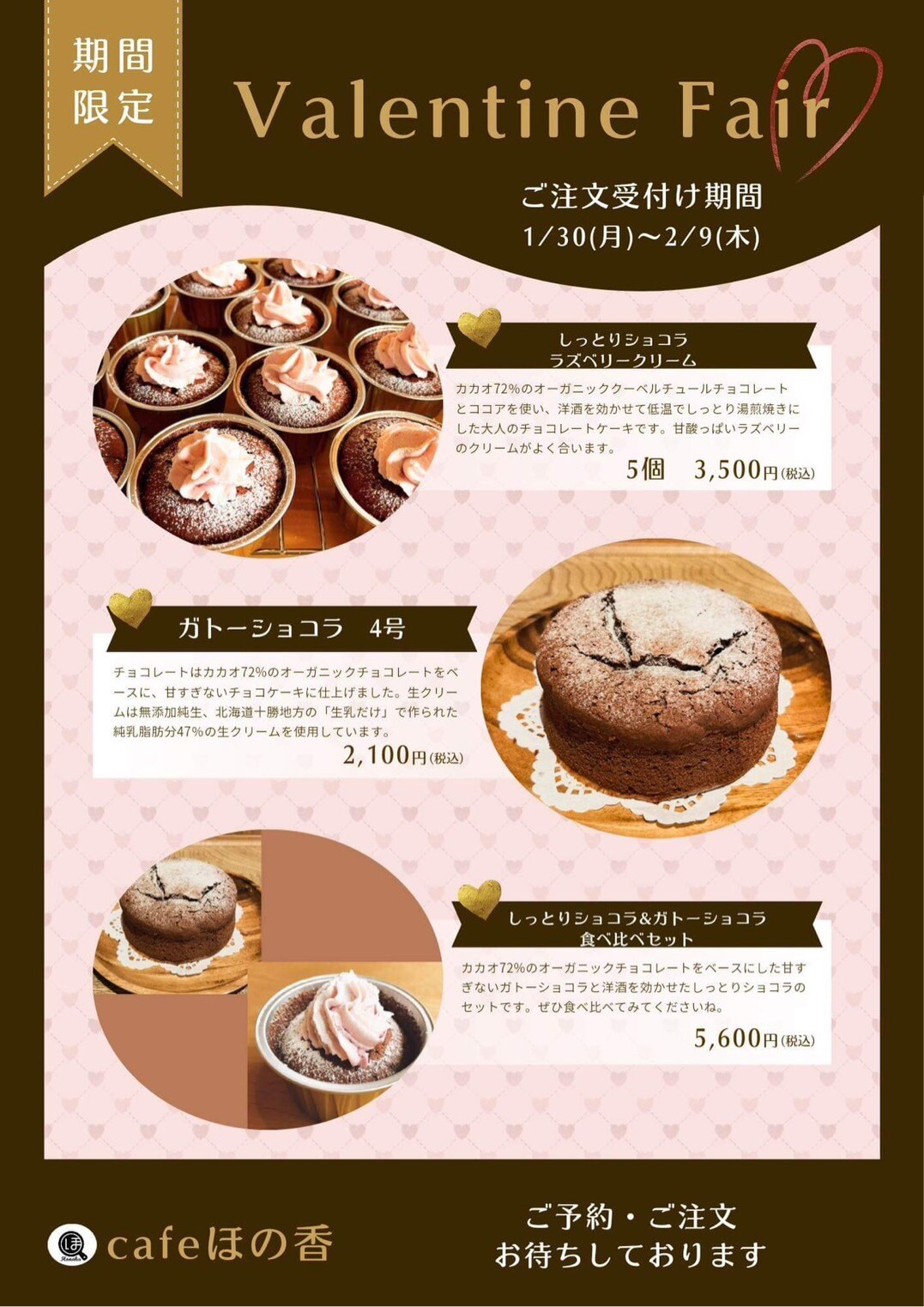 手づくりスイーツ・雑穀米お弁当のお店・Cafe ほの香です。