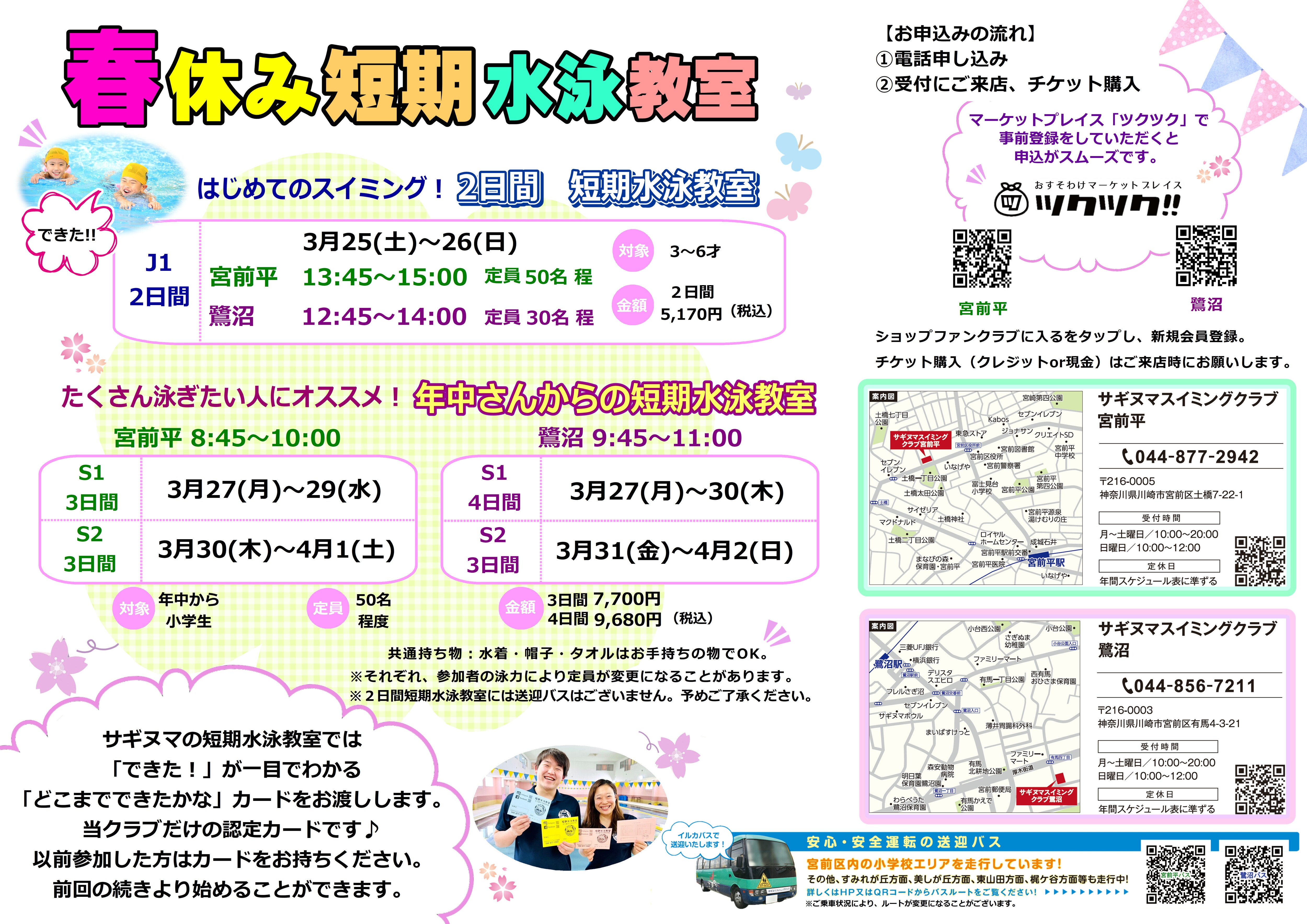 本日!2月7日より申し込み開始‼春休み短期水泳教室!