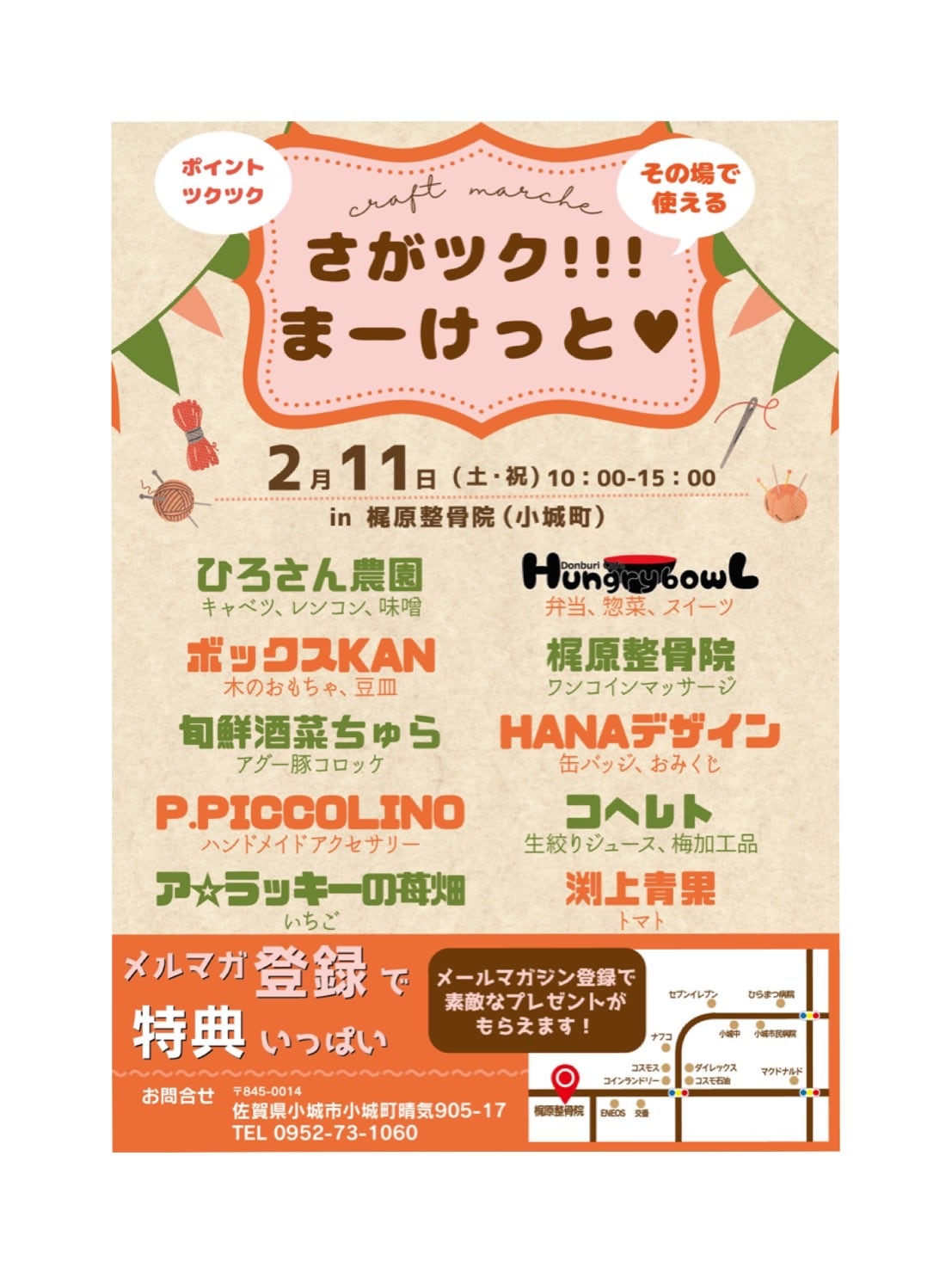 2月11日(建国記念日)10時~15時で梶原整骨院の敷地を使ってマルシェをやります!!