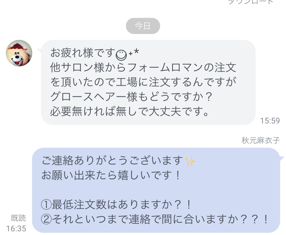 今回は、他のサロン様の発注に便乗する形です。