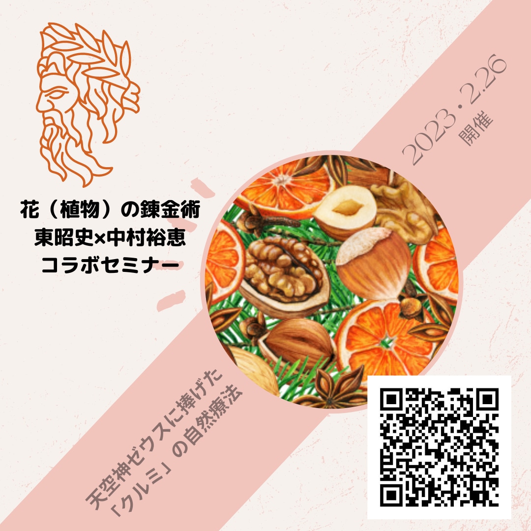 ●今月より「花の錬金術シリーズ」東昭史先生×中村裕恵コラボセミナー、今回「ウォールナット(くるみ)」の自然療法です。私は「腸とクルミ」、東先生は「胡桃から広がる植物(フラワーエッセンス)の世界」をお伝えしてくださる予定です。ファーイーストフラワーエッセンス・プロデューサーであり、バッチフラワーの達人の東先生の植物の世界が大展開しますので、皆様、すごく勉強になるかと思います。