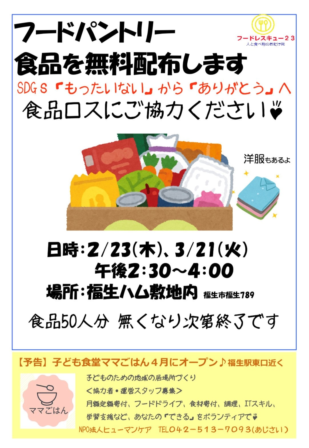 今日は食品無料配布のお知らせです。