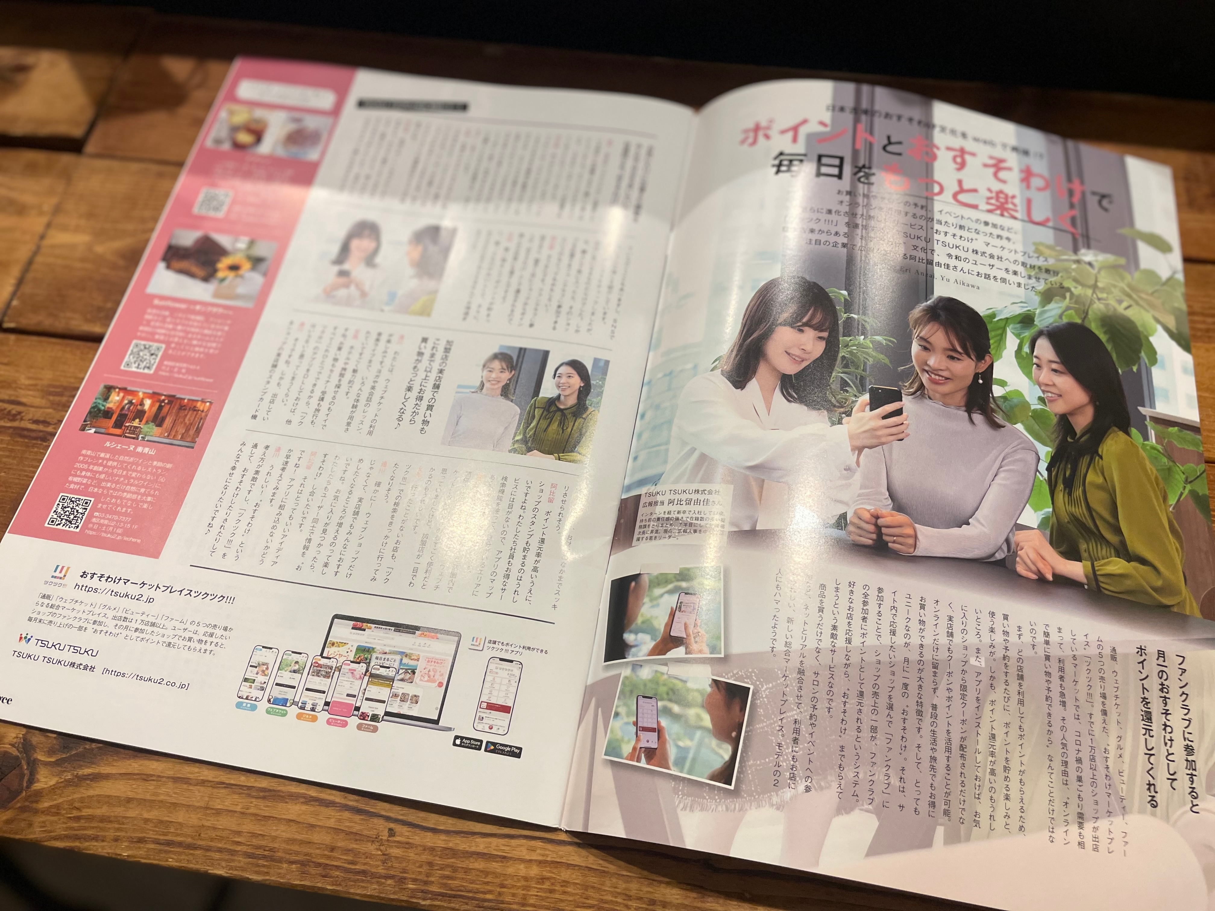 見開き一面、ツクツクの特集ページとなってます。