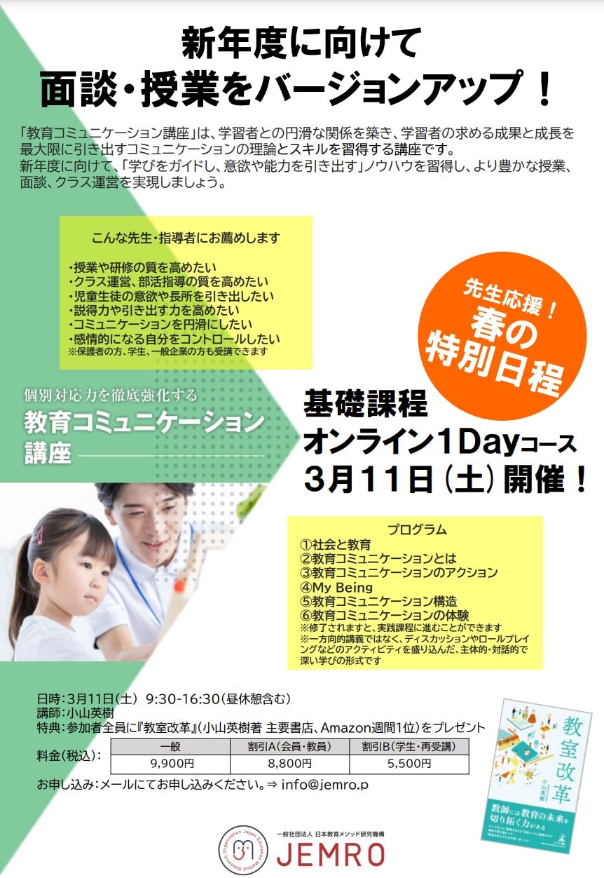 そうそう、私がコーチング、コミュニケーションについて学びを深めたJEMROさんでも基礎講座開催のようなので要チェックです!
