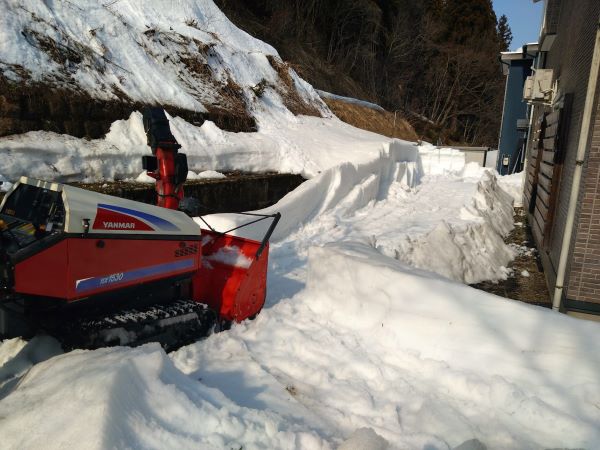 一昨日。お天気が良かったので、除雪機で除雪をしました。