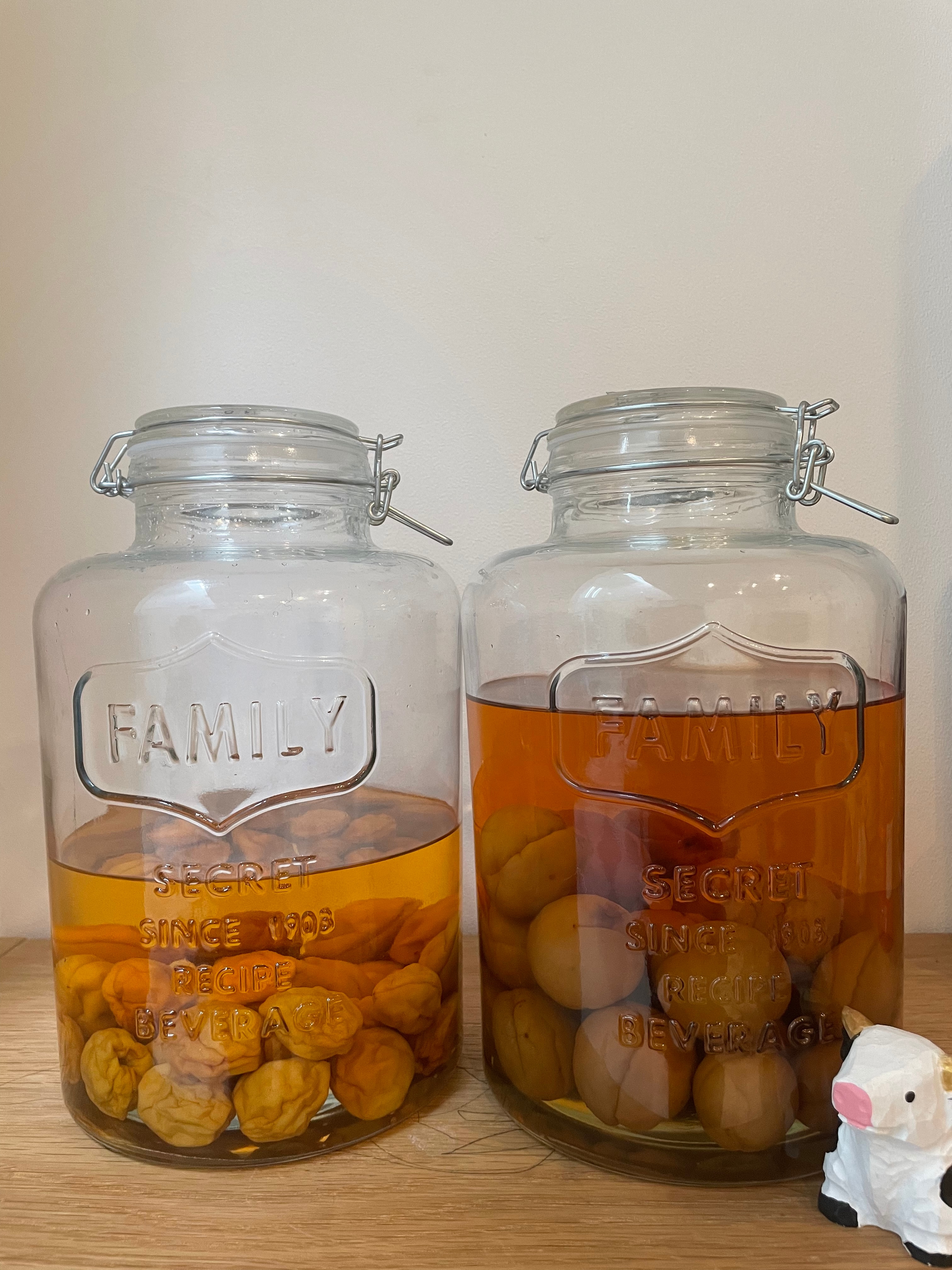 昨年、お客様から教えていただき、自家製梅酒を3本作りました。