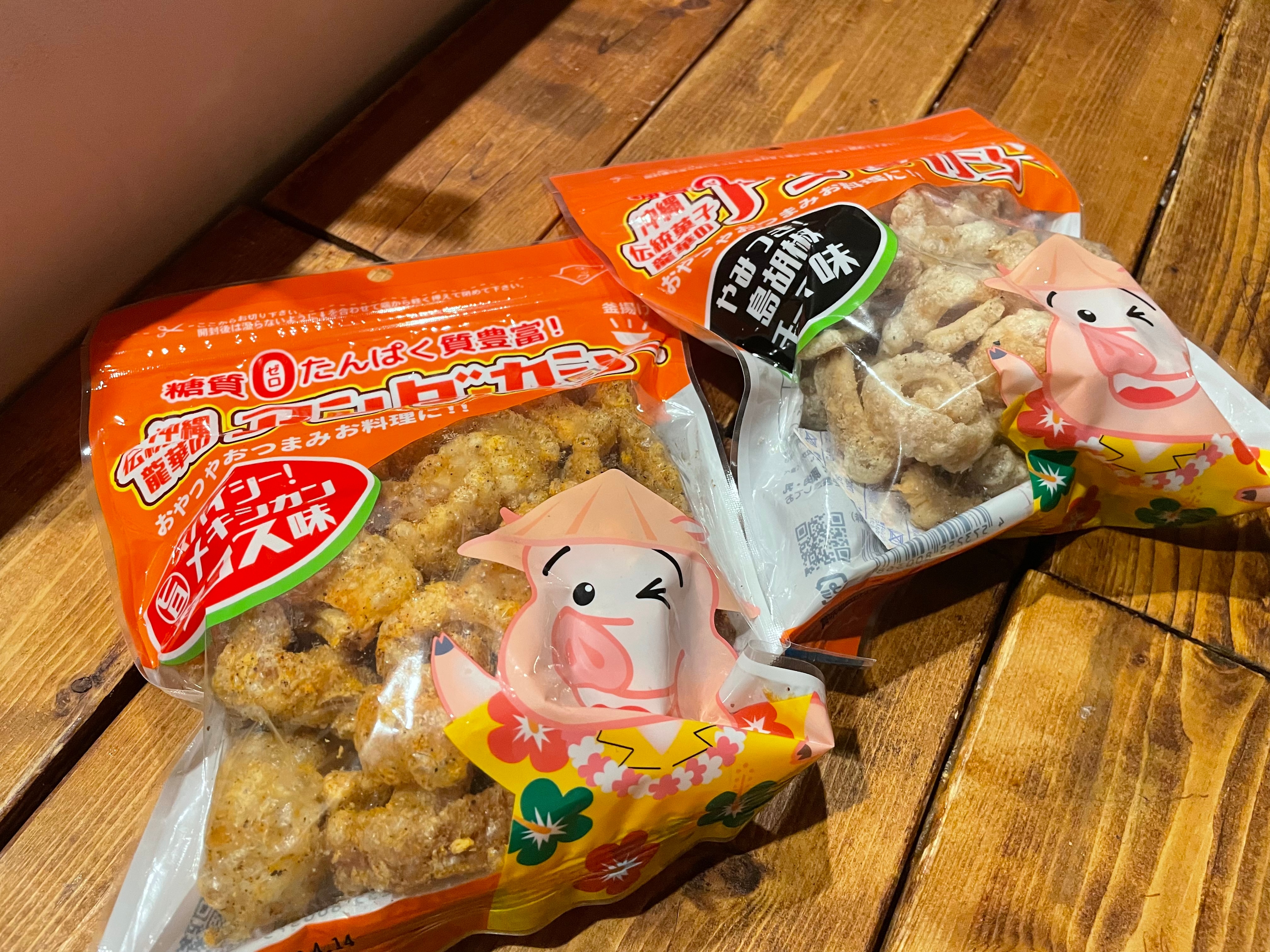 豚の皮や脂を沖縄伝統の釜揚げ製法にこだわって香ばしくカリッと仕上げた沖縄の昔ながらのおやつ。