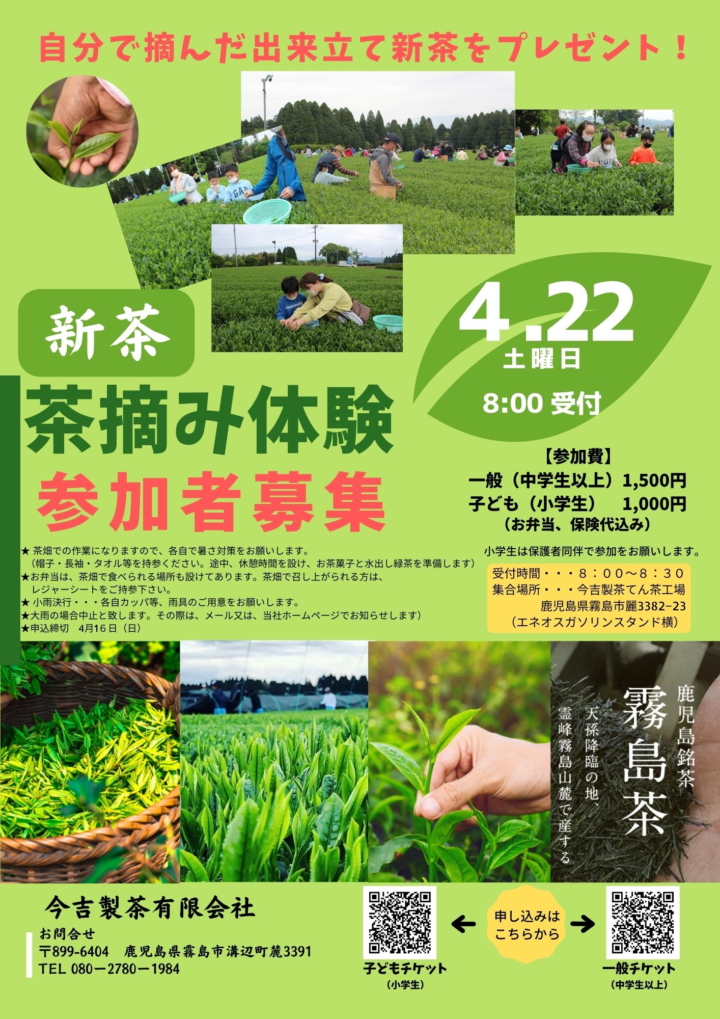 さて今回は、【第2回今吉製茶お茶摘み体験】先行予約一般販売のご案内です!!